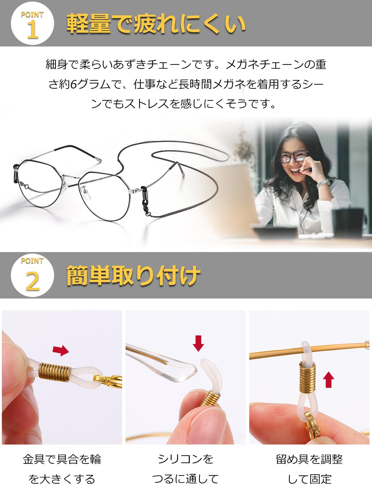 [ChainsPro] メガネチェーン レディース おしゃれ 眼鏡マスクストラップ メンズ ブラック ステンレス サングラス 落下防止 幅1.8mm あずきチェーン