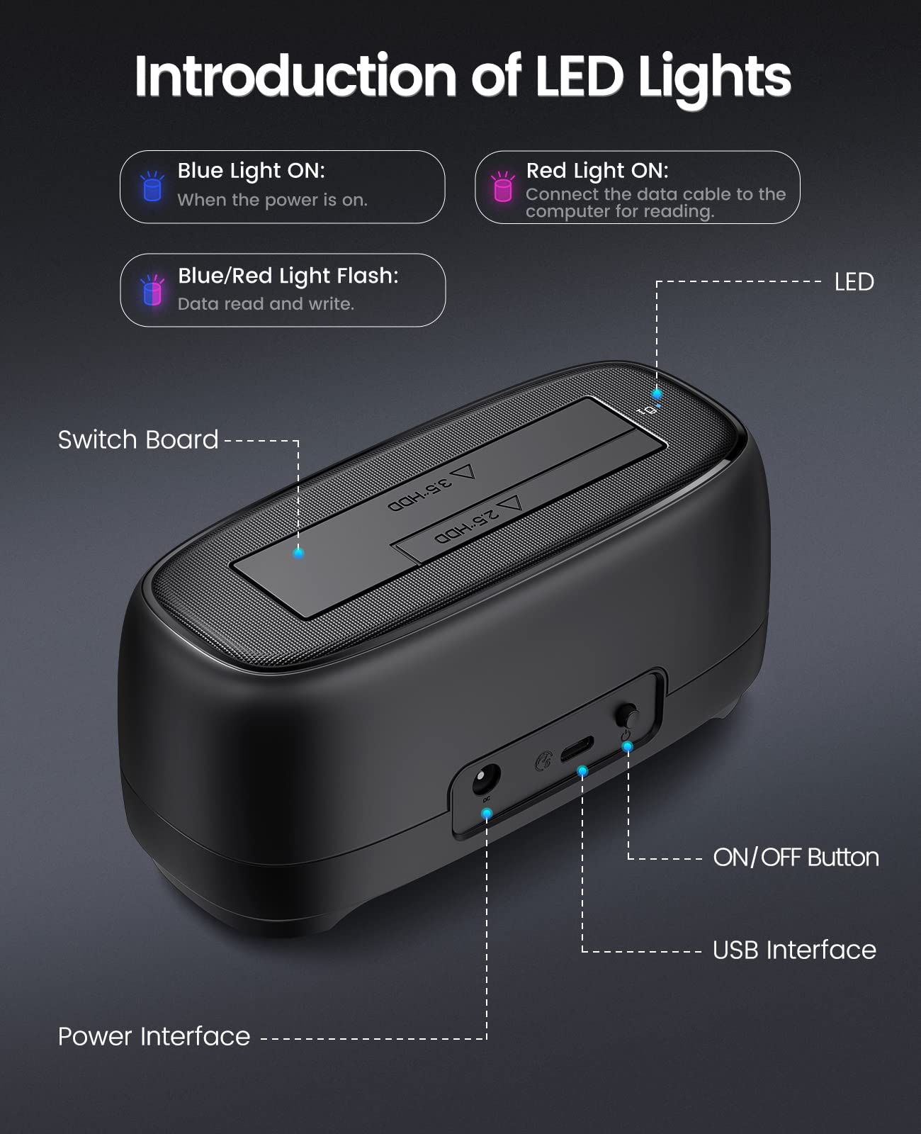 【パワフル機能】-HDD ケースは20TBの超大容量に対応し、LEDインジケータライトで監視します。 作業せずに10分後にスリープモードを自動的に入ります。