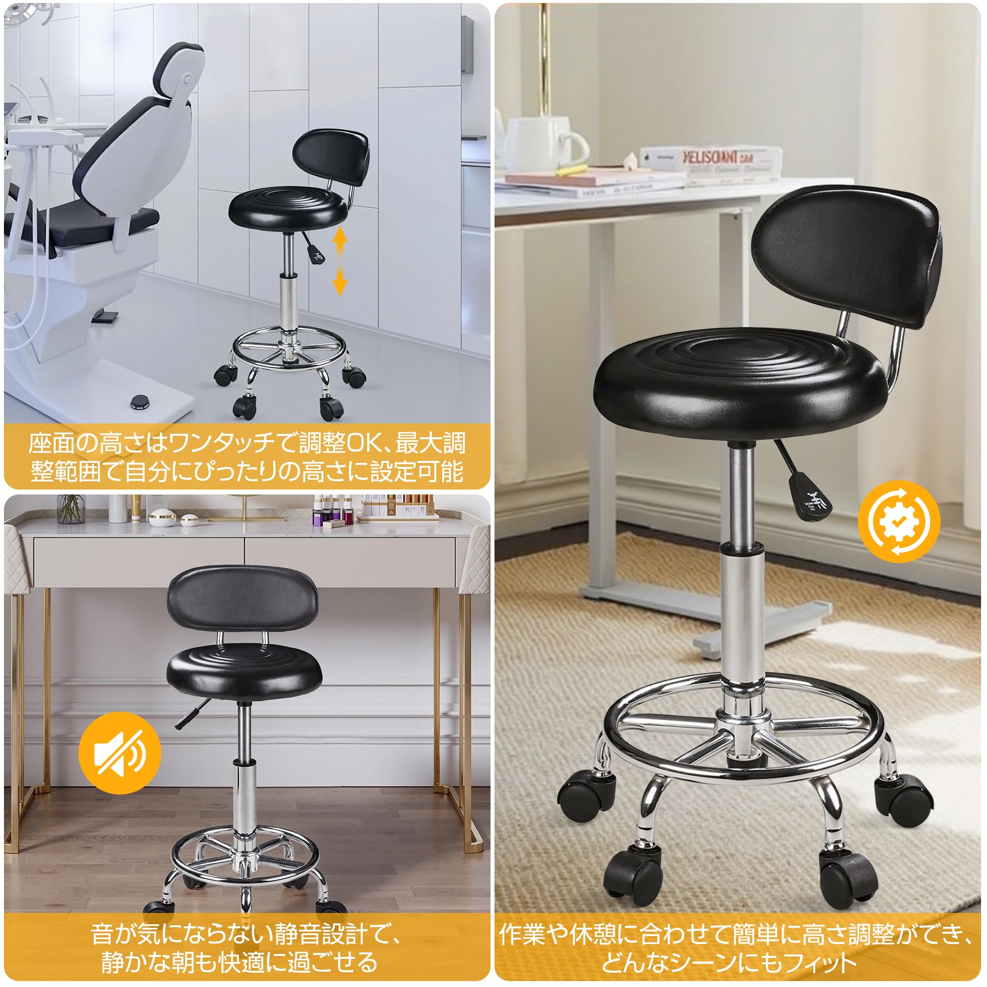 【活躍シーン】:オフィスや自宅のワークスペース、書斎、パソコン作業に最適。診療所、理容室、美容室、ネイルサロン、エステサロンなど、さまざまな施術シーンでも活躍します。キャスター付きで移動もスムーズ、昇降機能で高さ調整も簡単にできます。