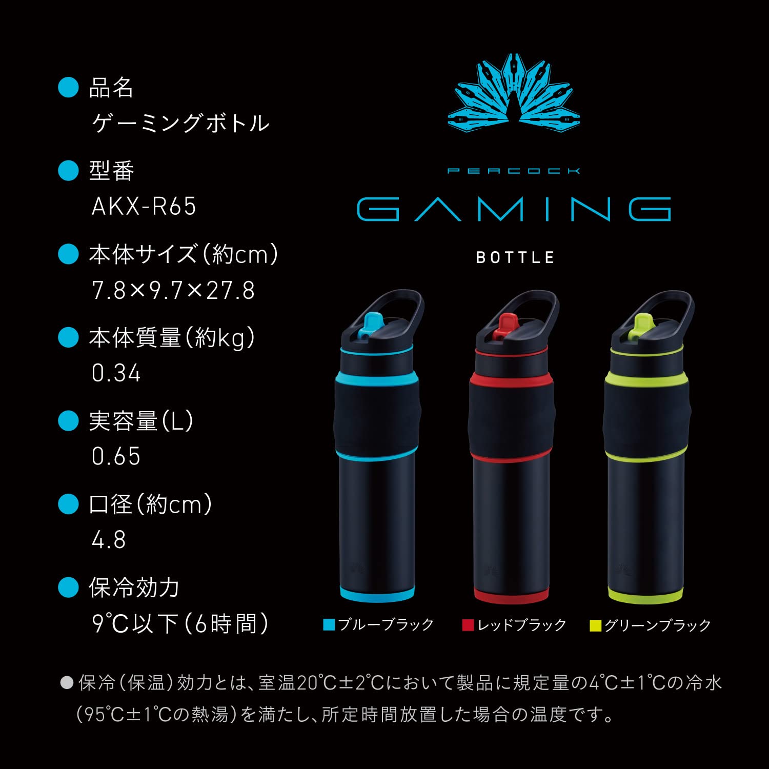 ピーコック 水筒 650ml 真空断熱 保温 保冷 ストロー付き ゲーミング ボトル スポーツドリンク 対応 レッド ブラック AKX-R65 RB