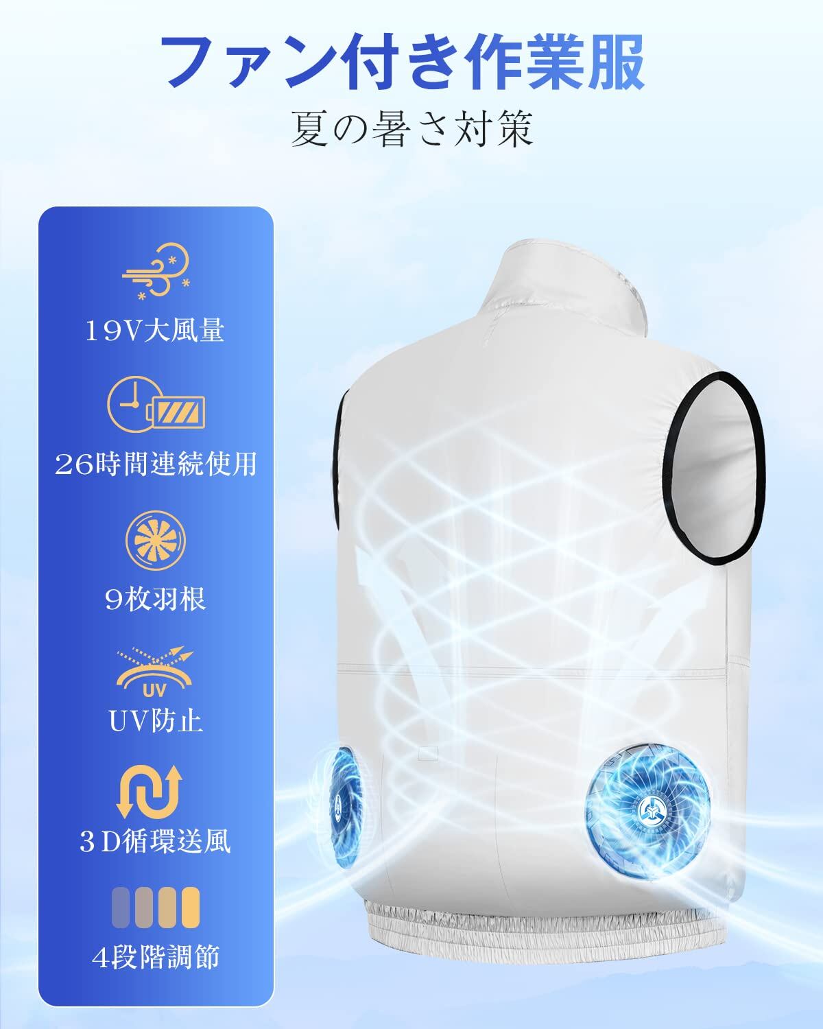 [Sumeriy] ファン付き作業服 ウェア ベスト 30000mAhバッテリー付き 超高出力 空調作業服 4段階風速調節 超長連続使用時間 大風量 USB給電式 UVカット 暑さ対策 熱中症予防 屋外作業 在宅 通勤 男女兼用