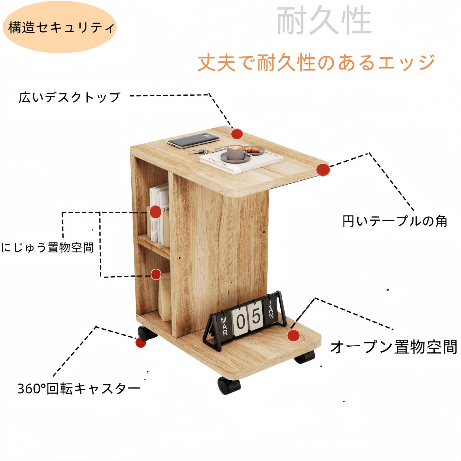 1.応用が広い:車輪付きのサイドテーブルは仕事、食事、おやつ、コーヒー、雑誌を読むのに便利で、リビング、寝室、書斎、小空間、特にソファーとベッドのそばに適しています。 いつでもどこでも本や日用品をストックしておく。