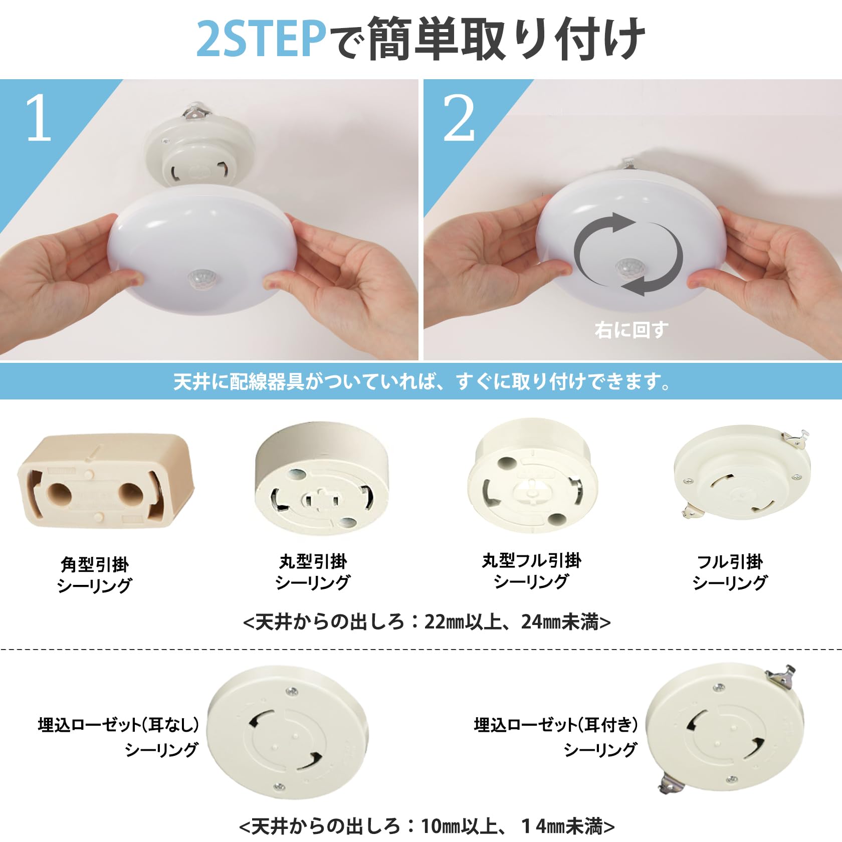 【ワンタッチ取り付け】電気工事や特別な工具を必要とせず、手軽に設置が可能。そして、移動や取り外しも容易で、いつでもどこでもお好きな場所に変えられます。