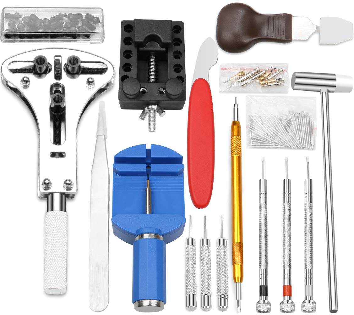 電池交換、腕時計のベルト交換、ガスケットの調整、腕時計バンドの調整、ベルト長さ調整や内部の修理時に、147セット入り、必要な工具は一式揃っており、時計屋さんに修理を頼まなくても自分で直せます。