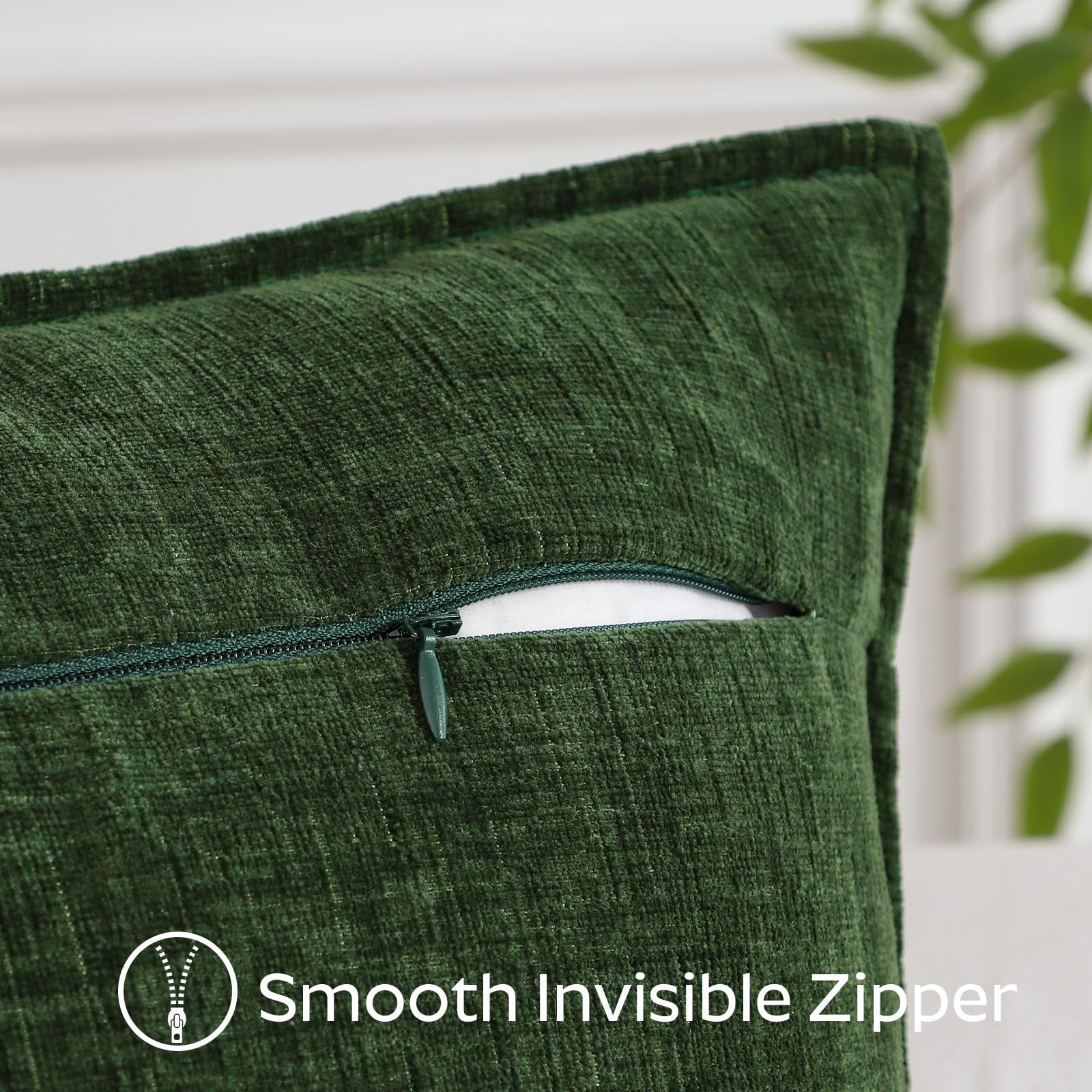 Otostar クッションカバー 北欧 2枚セット 無地 おしゃれ 可愛い シュニール織り シンプル 肌触り良い ファスナー インテリア 装飾用ピローカバー 座布団カバー (45x45cmグリーン)