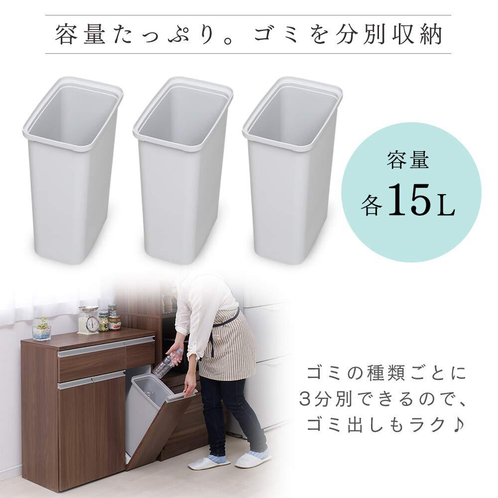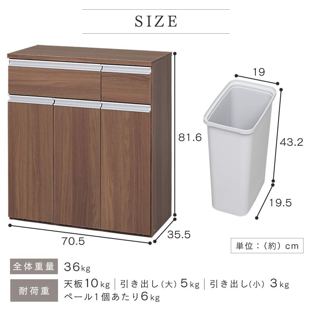 容量たっぷり、ゴミを分別収納できるペールカウンターです。ゴミの種類ごとに3分別できるから、ゴミ出しがラクラク! 充実の収納スペースで、生活感が隠せてスッキリ! 気になる臭いも抑えます。◆天板作業台としてもオススメの広々天板。◆引出し(大)ラップやアルミホイルなどのストックに。◆引出し(小)ゴミ袋などの収納に最適。さらに、別売のキャスターを取り付ければ、移動が楽に行えます。◆選べる3カラー・Off-White(オフホワイト) 清潔感のある明るい雰囲気に。・Natural(ナチュラル) やわらかで温かみのある雰囲気に。・Walnut(ウォルナット) 重厚感のある落ち着いた雰囲気に。※お客様組立商品です(工具はお客様にてご用意ください)