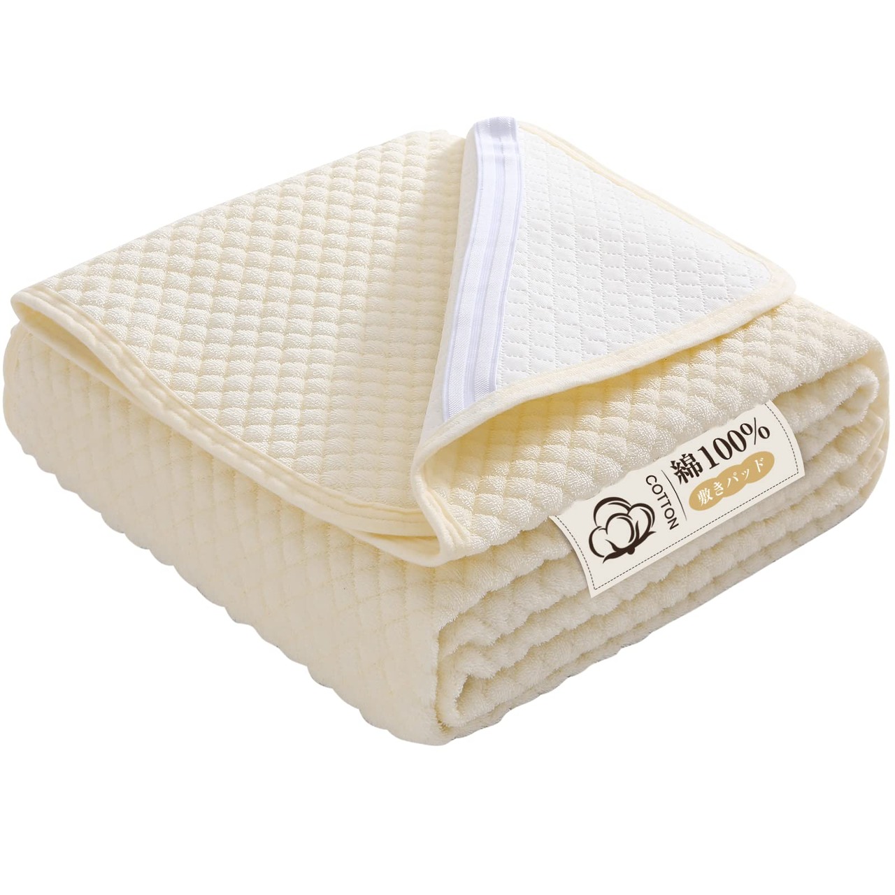 【在庫処分】Keusnix 敷きパッド ダブル 綿100% タオル地 ベッドパッド コットン パイル地 【TEIJIN マイティトップ中綿使用】敷パット 収縮加工 抗菌・防臭・防ダニ加工 敷パッド オールシーズン 吸湿速乾 しきぱっと 洗える ゴム付き ベッドシーツ ふわふわ 耐久性向上 マットレスパッド 140X200cm アイボリー | asaRulu0511
