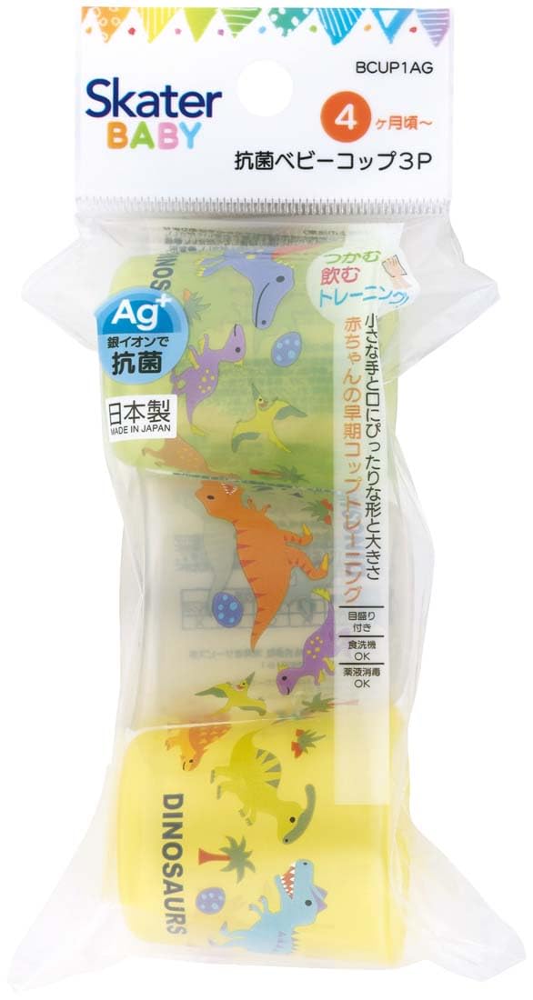 【新春セール】スケーター(Skater) ベビーコップ 60ml 小さい コップ 4ヵ月~ 子供用 3P 抗菌 ディノサウルス ピクチャーブック うがい 歯磨き 練習用 BCUP1AG-A