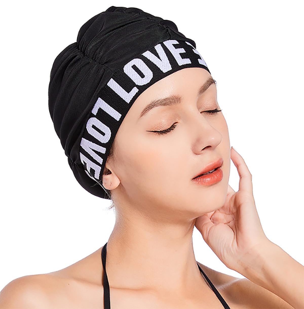 【特価商品】レディース スイムキャップ 水泳帽子 ゆったり 伸縮性良い プリーツ おしゃれ 韓国風 耳守り 長髪短髪 軽量 水泳キャップ スイミング用 プール 海水浴 夏 2色