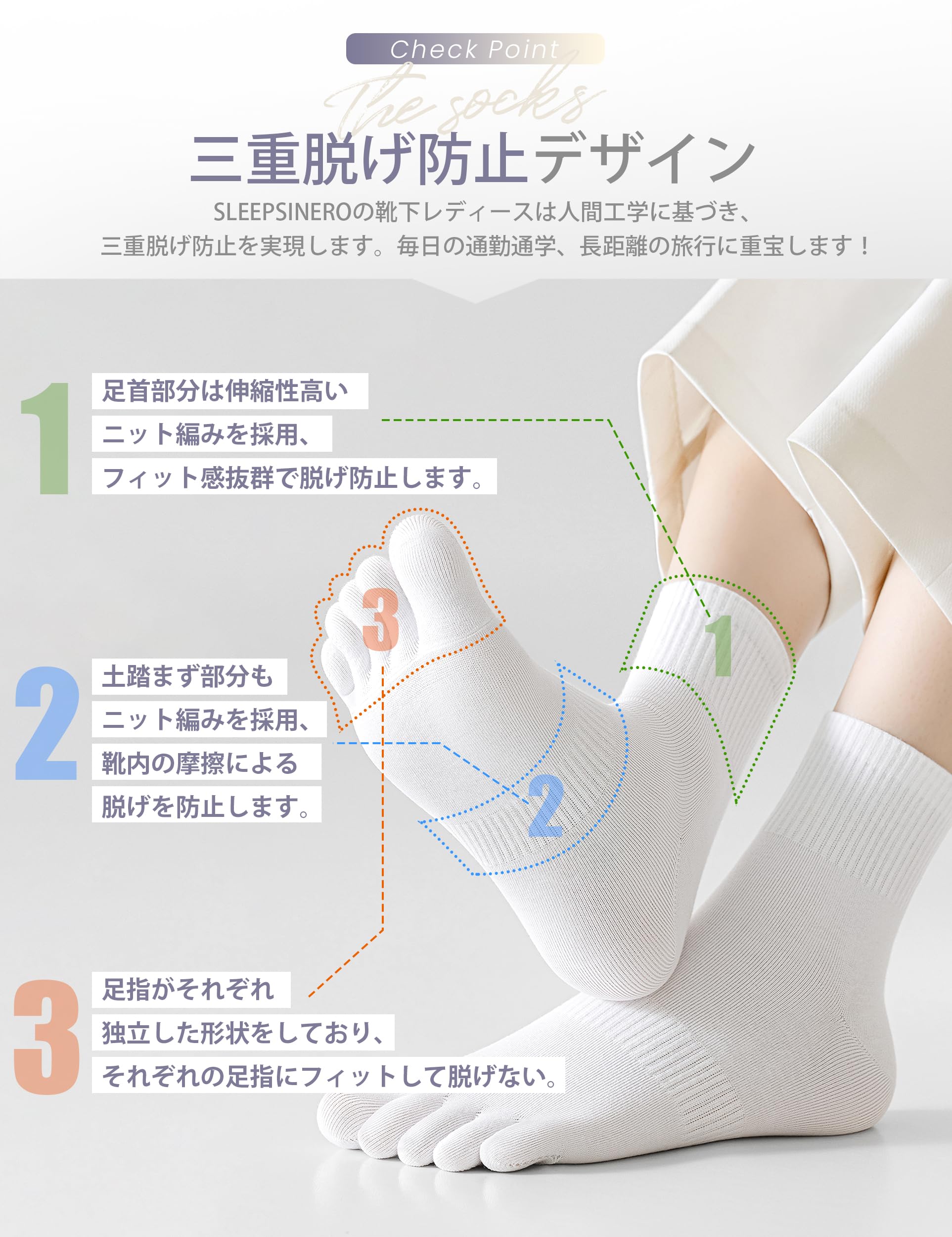 [SLEEPSINERO] 五本指ソックス レディース くるぶし 5足セット 【吸湿速乾・防菌防臭・三重脱げ防止】 5本指靴下 通気 綿 薄手 消臭 吸汗 靴下 レディース靴下 可愛い おしゃれ スポーツ ランニング 女性 四季用 22-25cm
