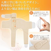 【商品の原理】ステンレススチールのフィッシュボーンバーを通じて、変形した関節に安定した穏やかな圧力を加え、徐々に足の指の曲がり角度を調整し、関節と軟部組織を正常な位置に戻します。
