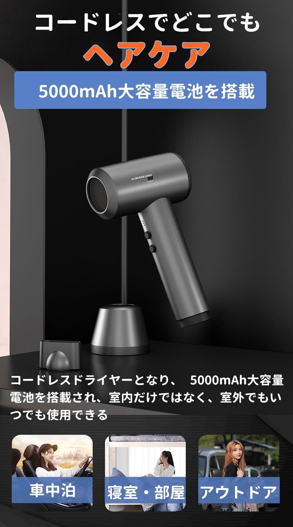 【快適な使い勝手】このコードレスドライヤーは、充電式でコードが不要なので、どこでも自由に使用できます。温風と冷風の切り替えが可能で、6段階の温度調整機能を搭載。髪質やスタイルに合わせた最適な乾燥が行えます。