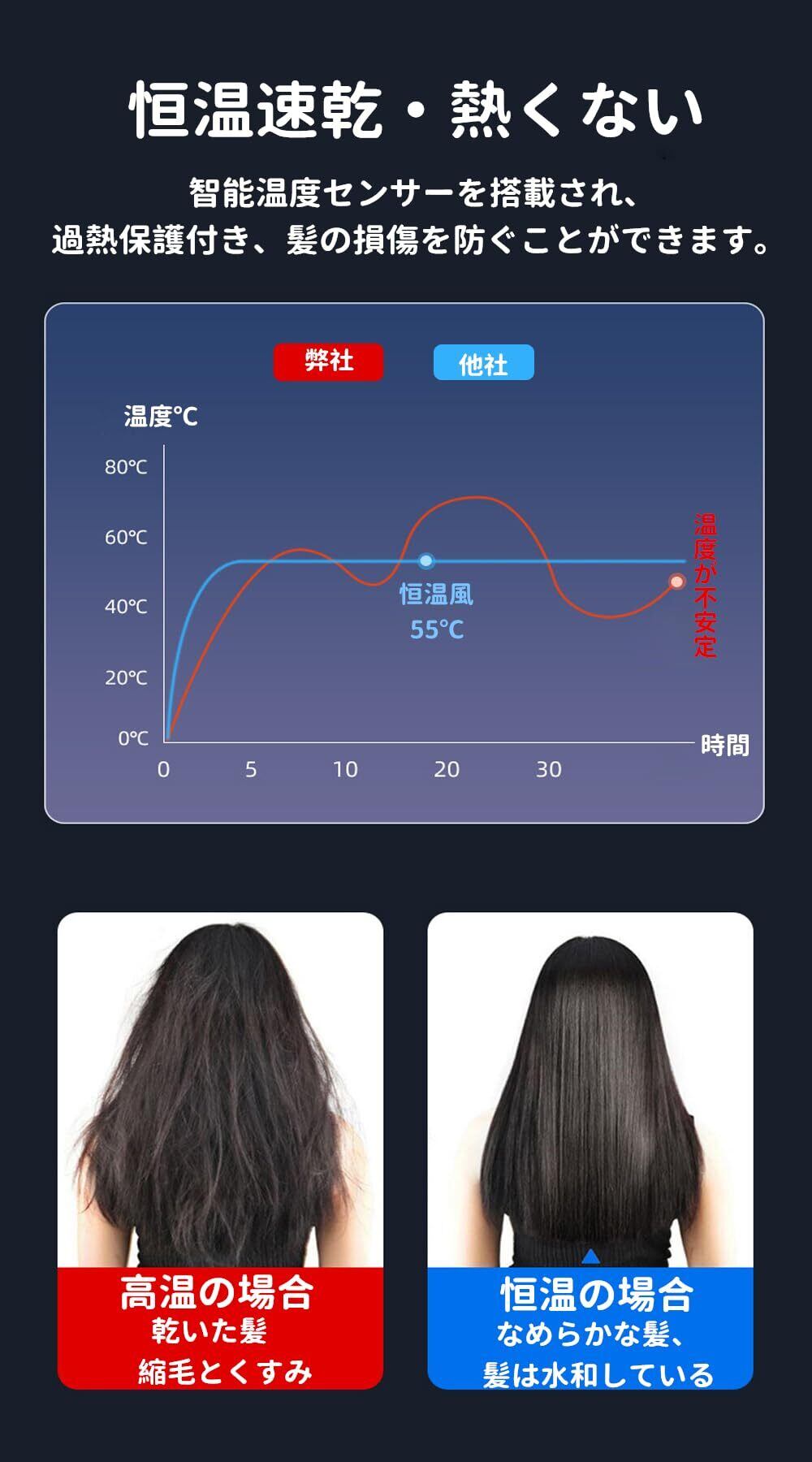 【安心の恒温機能】独自の恒温機能が搭載されており、髪のダメージを最小限に抑えつつ効果的に乾燥できます。乾かしながら髪を守る、理想的なヘアケアを実現します。
