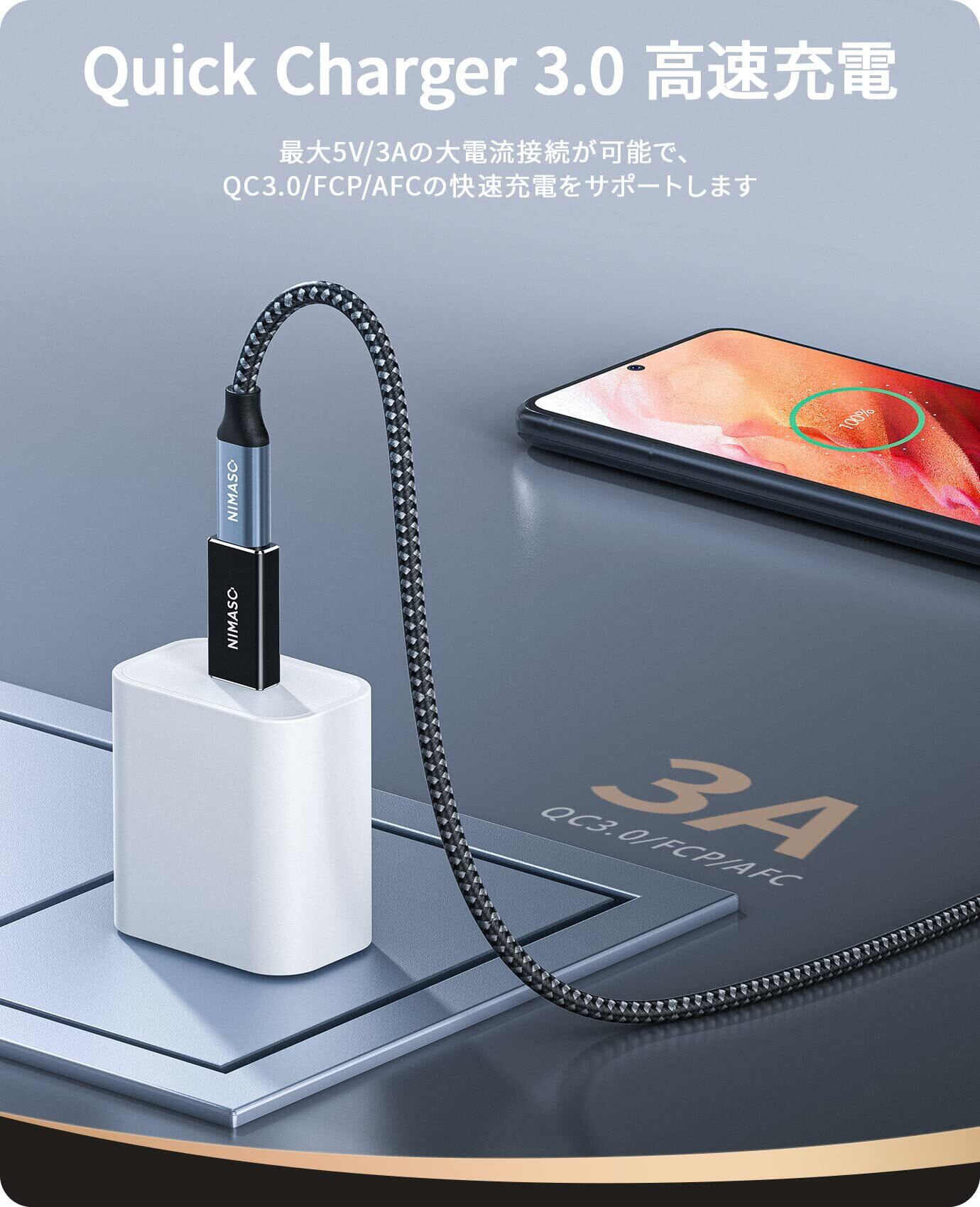NIMASO USB Type C(メス)to USB 3.0(オス)変換アダプタ【両面USB 3.0 高速データ伝送】QC3.0 高速充電 スマホ/パソコンなどに対応 usb c 変換コネクタ Black NAD22A437