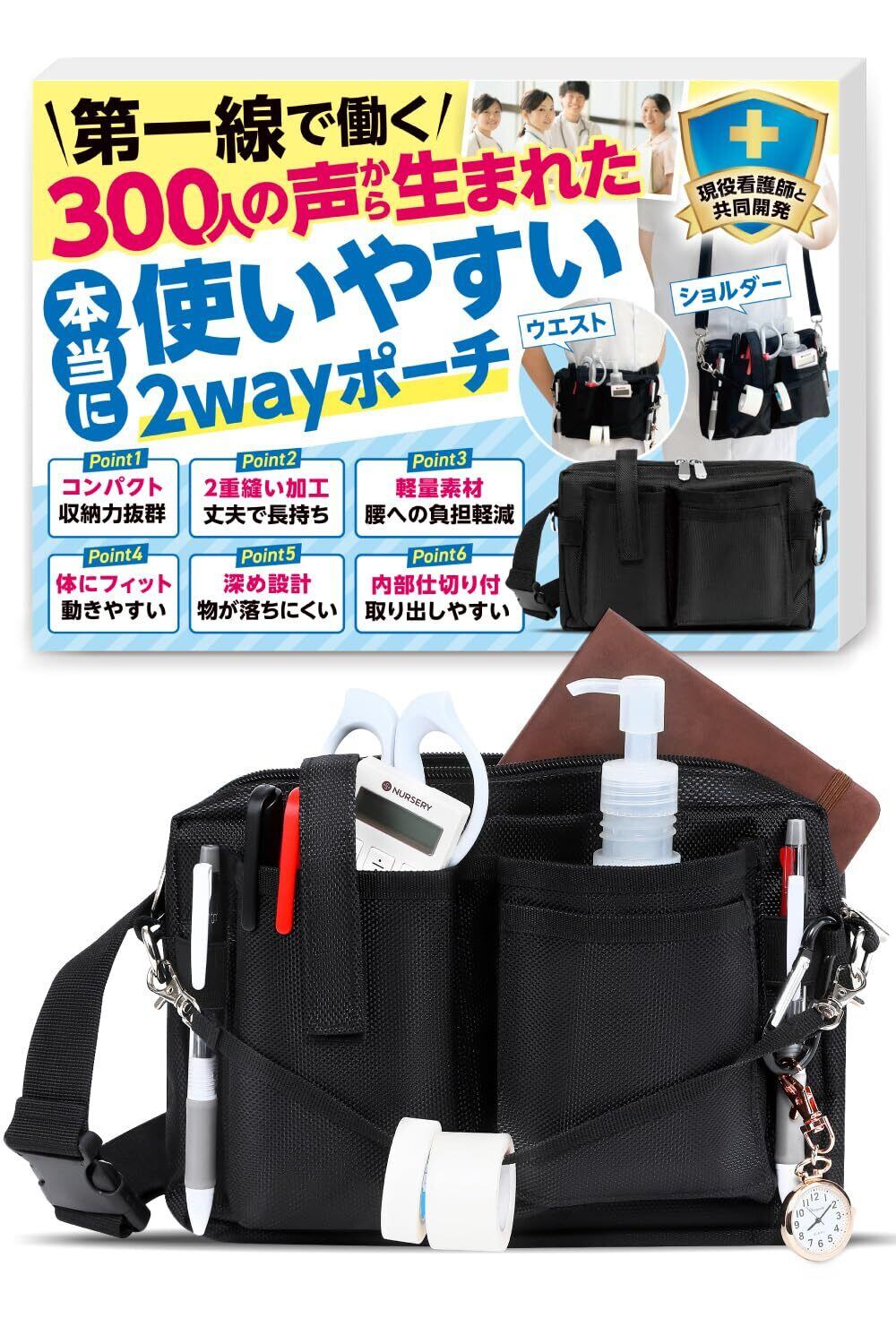 FUNFOUND ナースポーチ 【現役看護師と共同開発】ウエストポーチ 仕事用 看護師ポーチ 2WAY仕様 軽量 男女兼用 (ブラック)