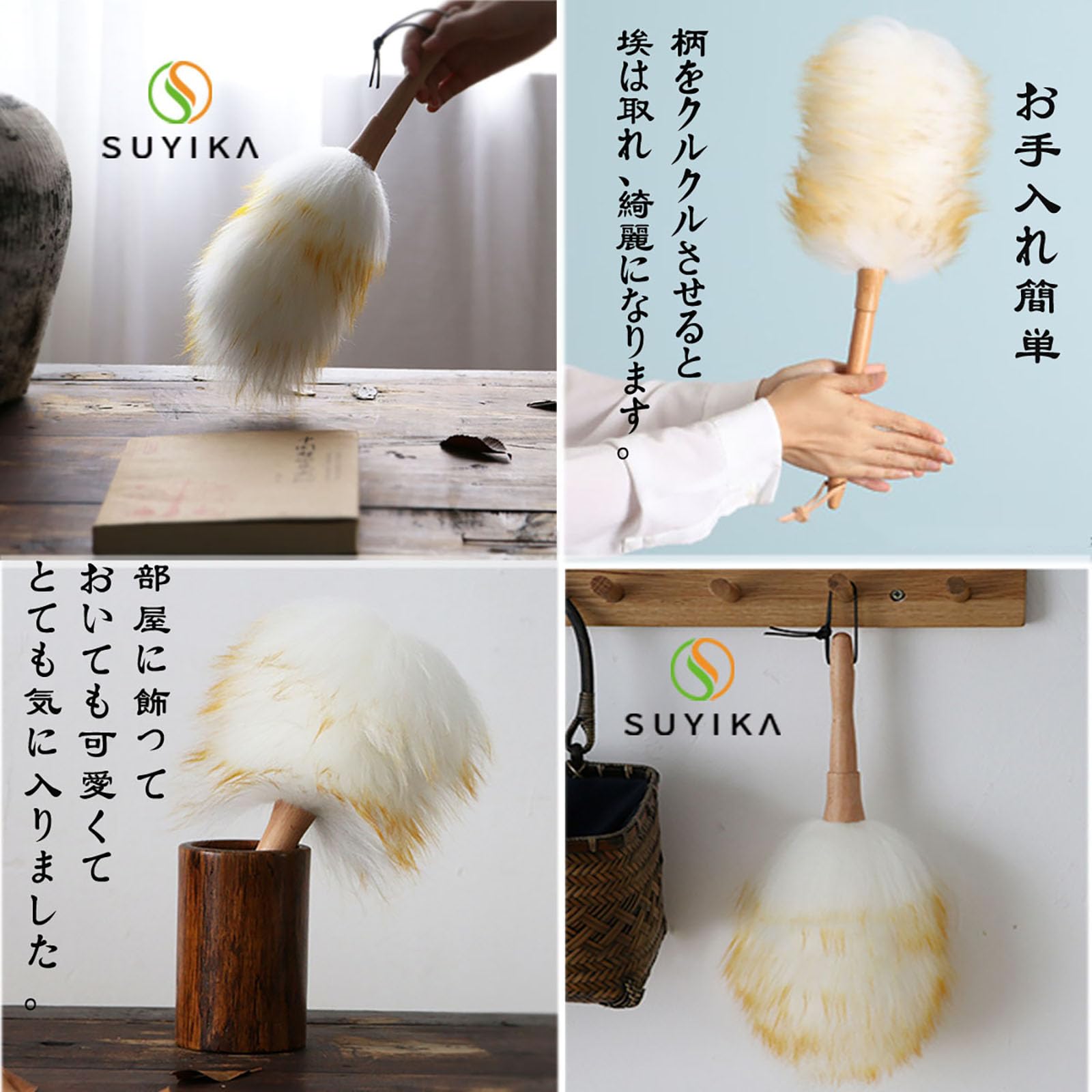 注意:柄の部分にsuyika logo模様を彫った。最近偽者の相乗り出品があるため、ご購入の際は必ず、販売元がsuyikaであることをご確認の上、ご購入お願い申し上げます。【ふわふわの羊毛製&サッと撫でるだけで簡単】:綿菓子のようなふわふわダスターが羊毛を使用した。ウールがホコリをしっかり吸着、弾力性に優れて、ふわふわの羊毛なので、狭い場所や、細かな物が置かれている場所でもスムーズに入り込んで、ほこりをキャッチ!軽く撫でるだけでキレイにします。