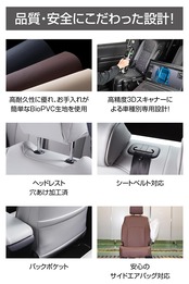 シンプルながらも曲線を取り入れたデザインで幅広い車種に違和感なくマッチするシートカバーに仕上げました。