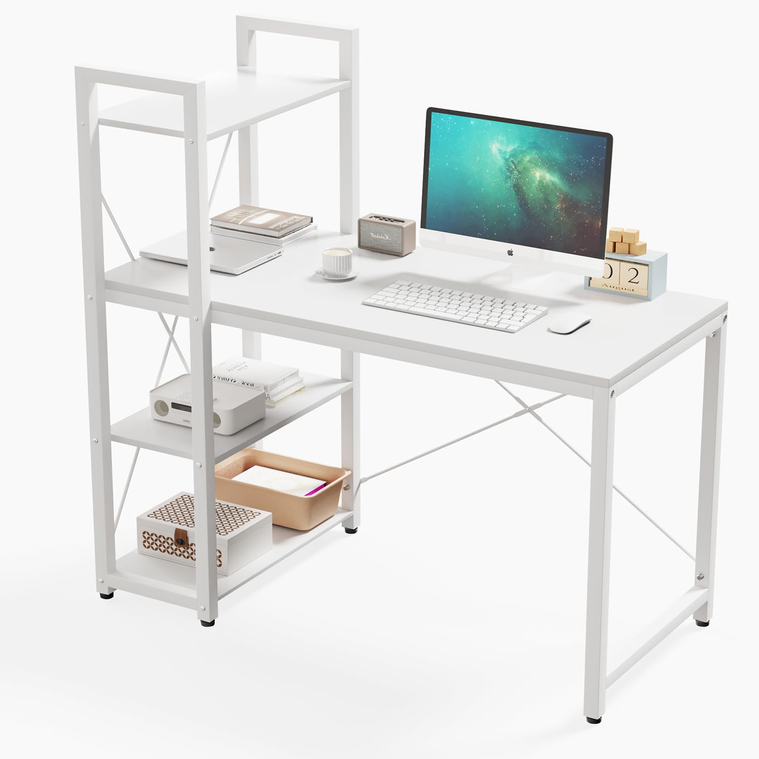 【在庫処分】PQNLXLN パソコンデスク ラック付きデスク H型(棚は左右付け替え可) 机 棚付き PCデスク 勉強机 幅100cm×奥行50cm オフィスデスク 書斎 テレワーク | asaRulu0511