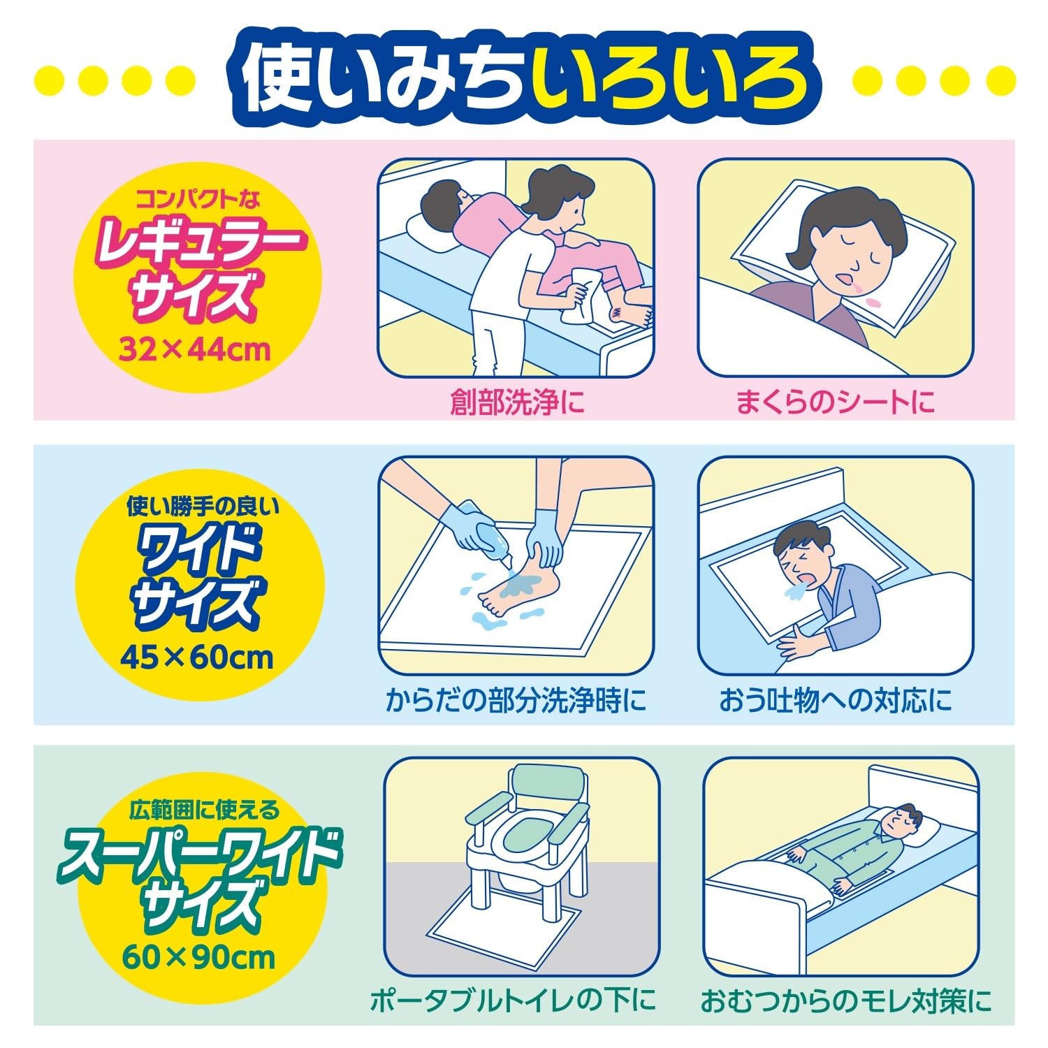 多目的吸水シートとして、多様な用途に使える大判タイプ。