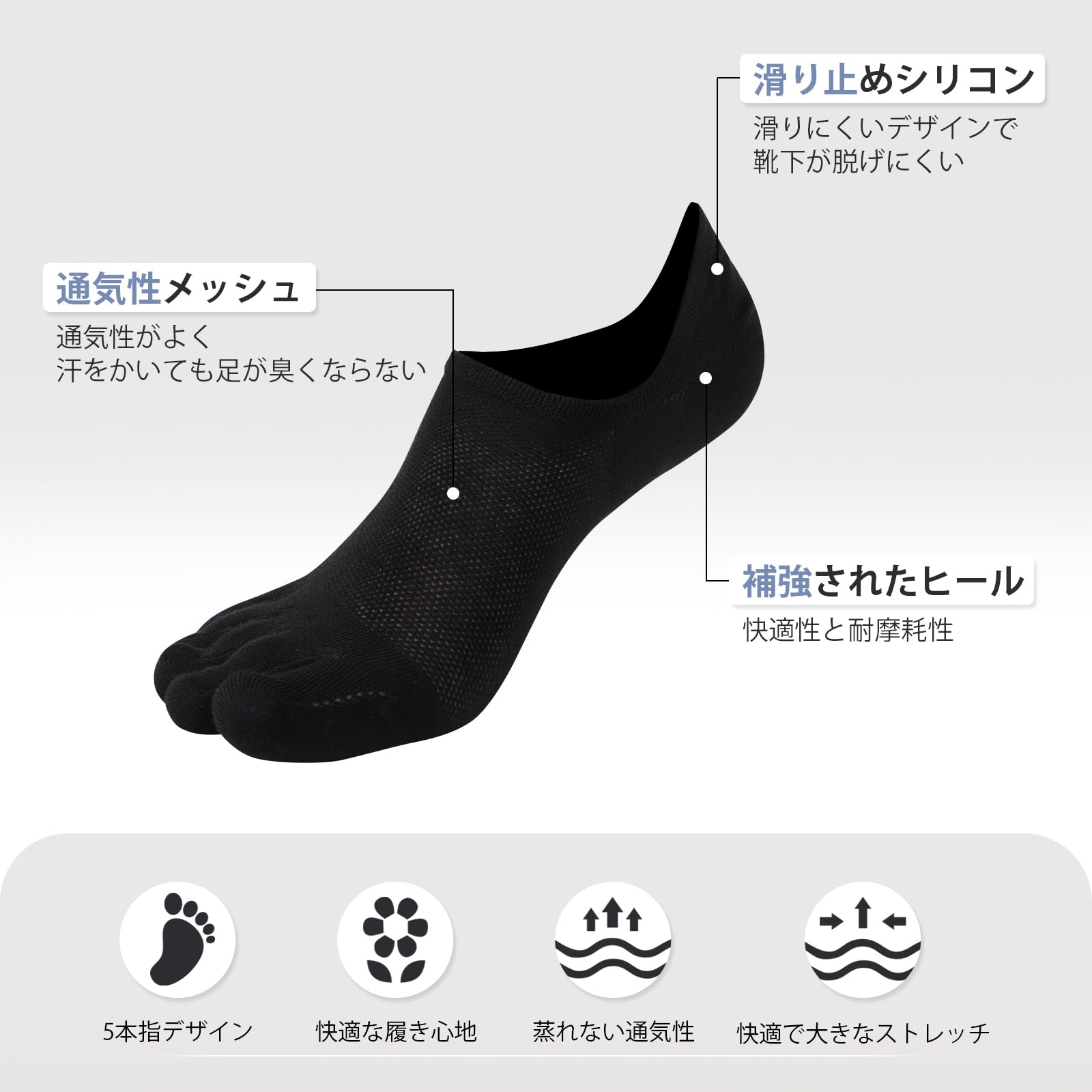 [Yazon] 5本指ソックス メンズ 夏 くるぶし靴下 綿メッシュ 五本指ソックス 夏用 フットカバー 脱げない 5本指靴下 薄手通気 男性用 スポーツ 浅履きカバー 5足セット 24-27cm