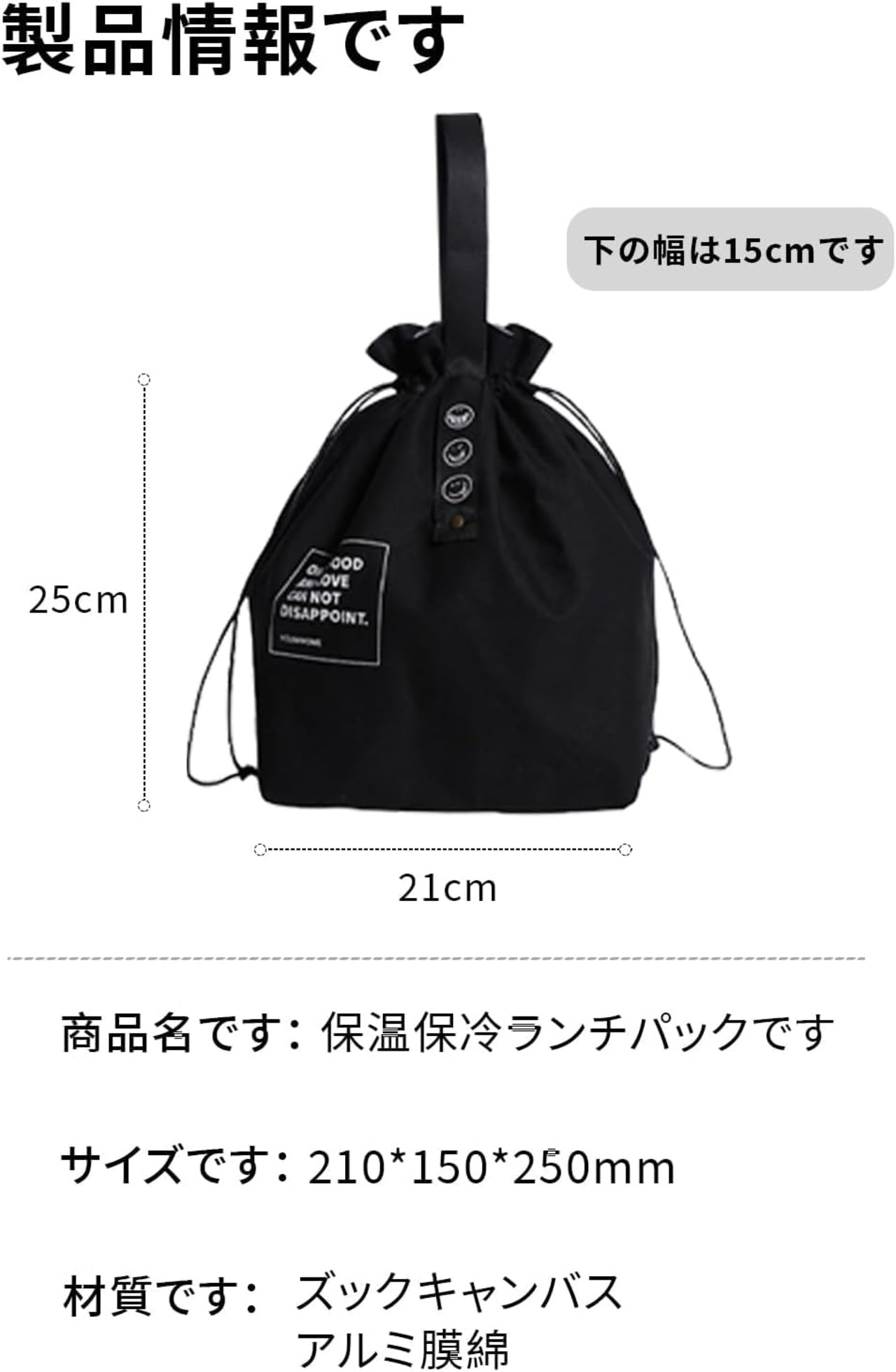 【内側はアルミ膜で作られ、防水保温】ランチバッグは綿のキャンバスと断熱アルミ模綿で作られ、長時間防水保温ができます。