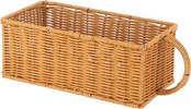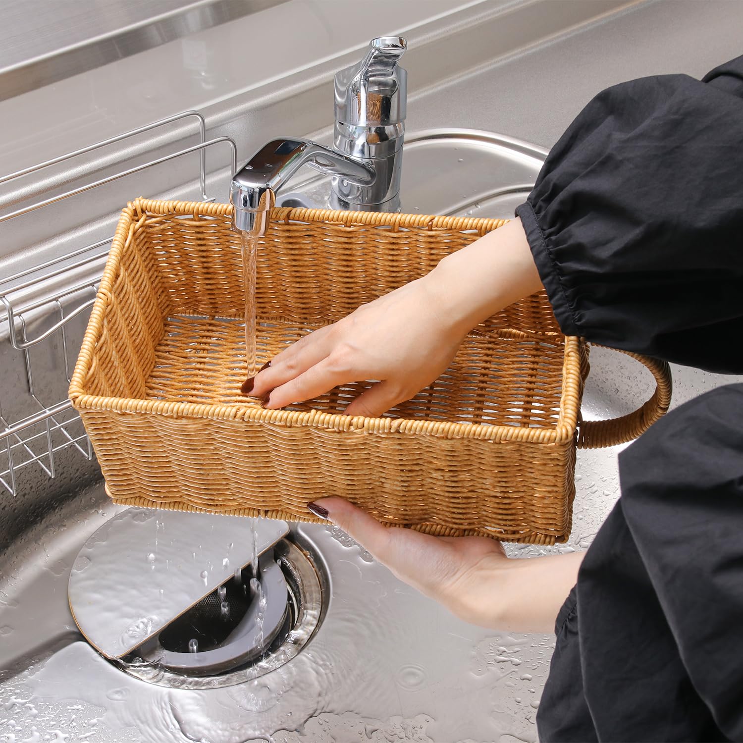 見た目はまるで天然素材のような風合いで水洗いできるハンドル付きバスケットです。
