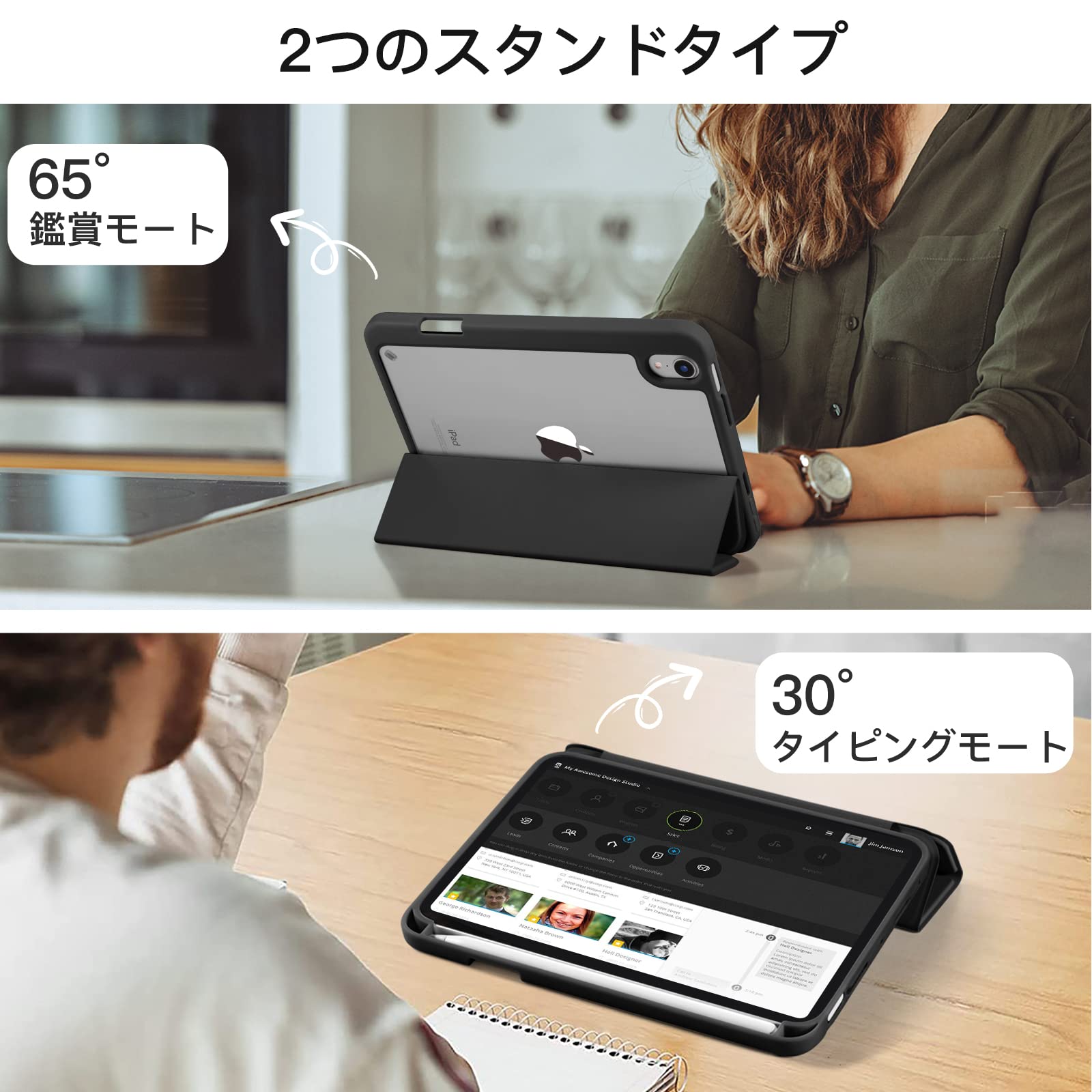 [2つのスタンドタイプ対応iPad mini6 カバー] 三つ折りフロントカバーにより、映画を鑑賞する時とタイピングする時にも非常に適しています。