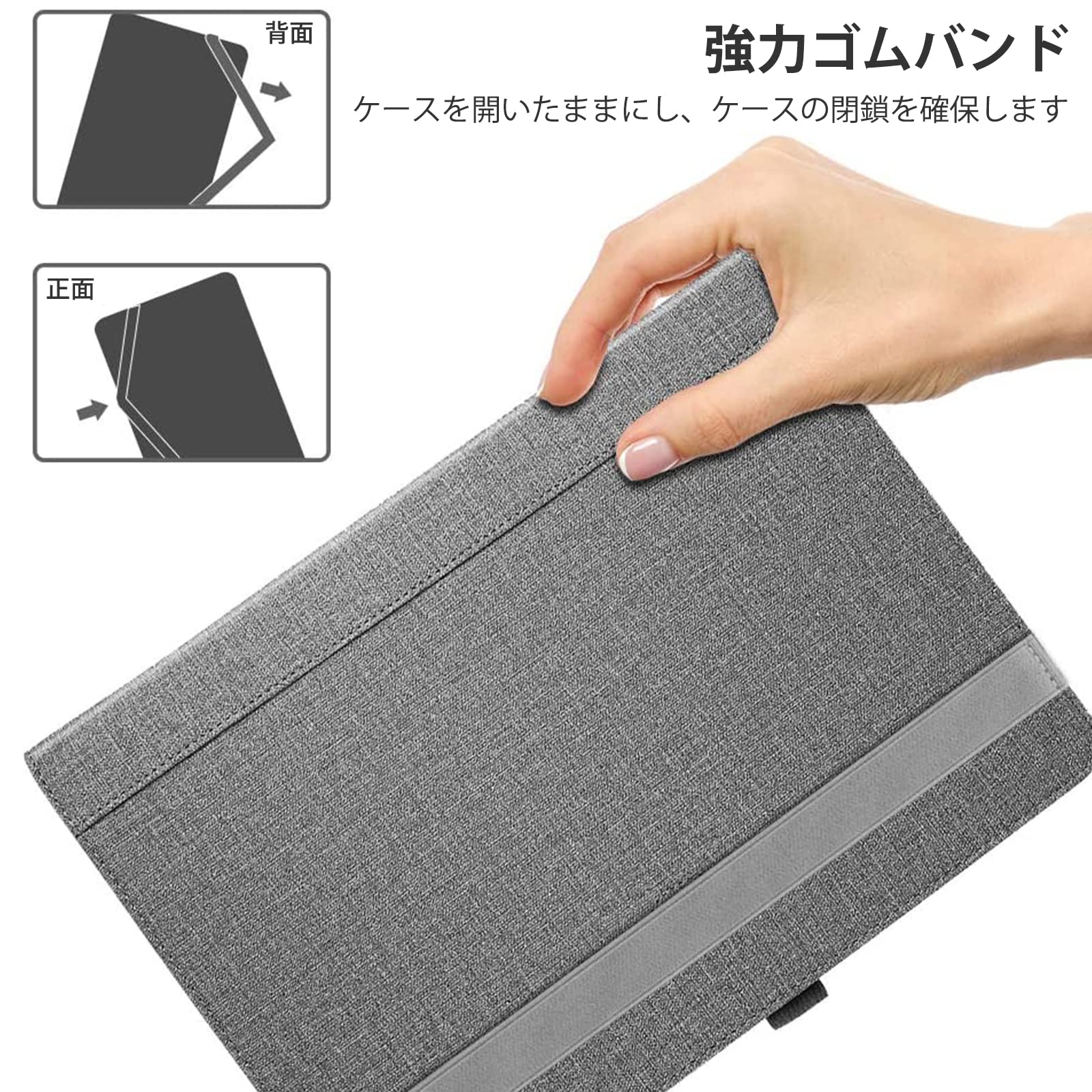 調整可能なストラップ:ケース外部には伸縮ストラップで固定し、内部にはX字型ゴムバンドで調節可能。ほとんどのタブレットにフィットします。