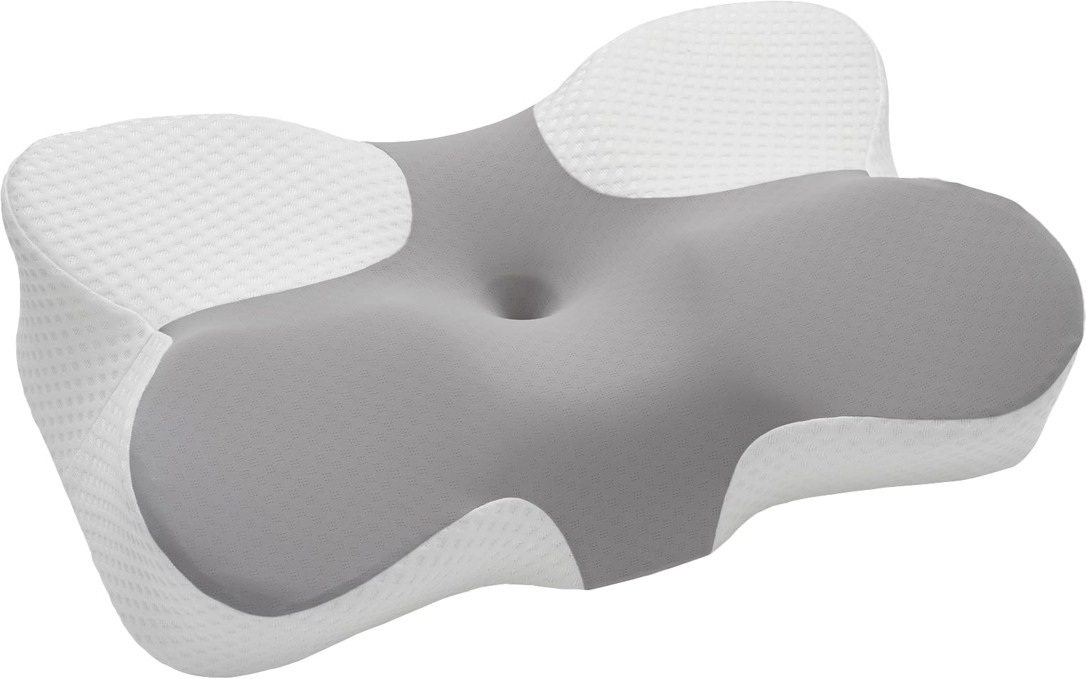 【在庫処分】Z-HOM 低反発枕 メモリーフォーム 首ラクラク まくら 中空設計 蝶形枕 くぼみ形状 仰向き 横向き 低め pillow 通気性 洗えるカバー プレゼント 60x38x13cm グレー
