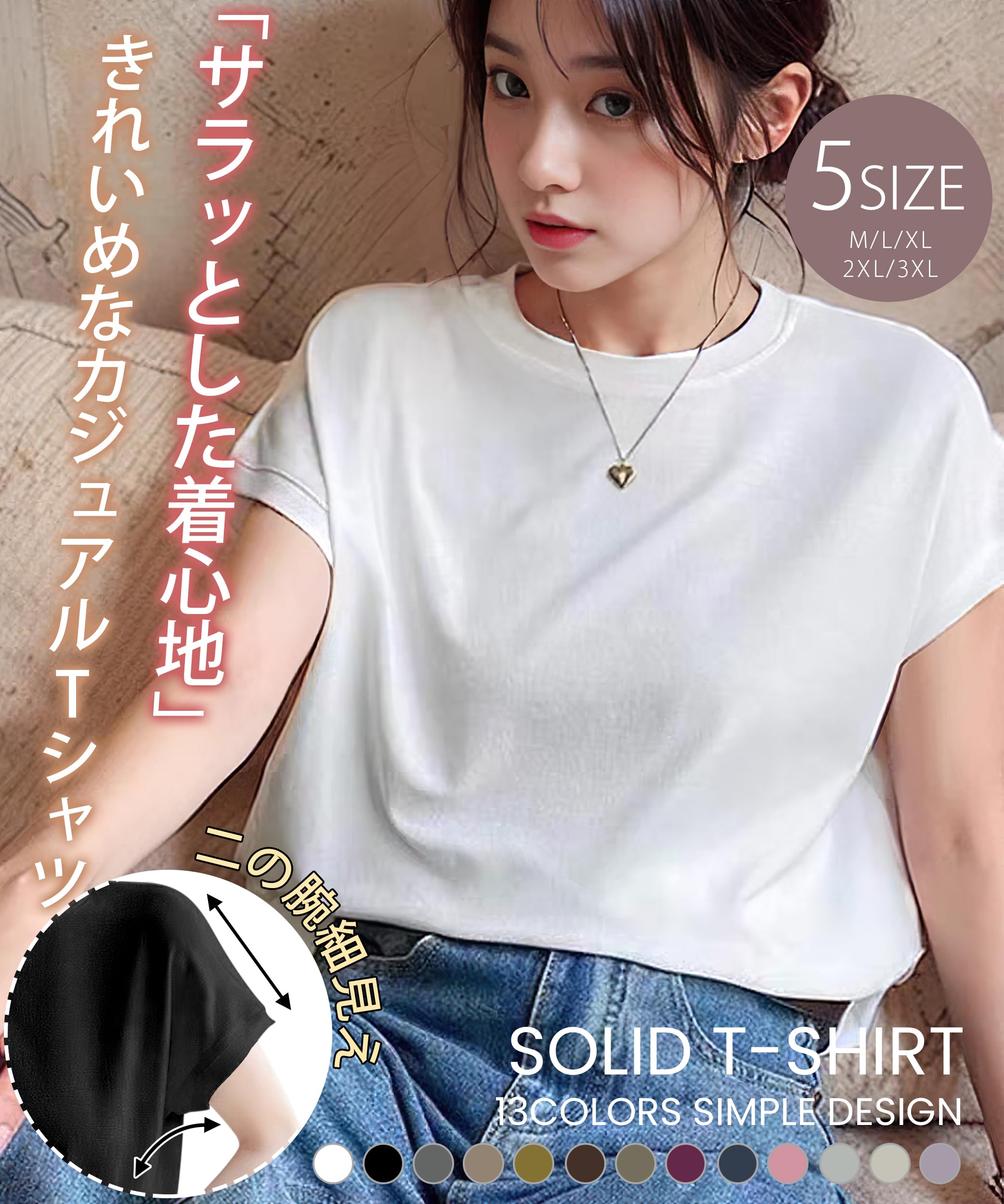 【着痩せデザイン】程よいボリューム感のあるHラインシルエットで、体型をしっかりカバーし、上品な抜け感を演出してくれるTシャツ。ゆったりタイプのTシャツなので、贅肉を隠して、すっきり着痩せを叶えます。袖幅がたぷりとしたワイドシルエットとなっており、二の腕への締め付け感もないTシャツ。レディーストップスはおしゃれな雰囲気に仕上がります。