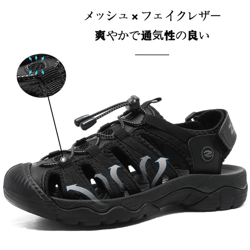 通気性のあるアッパー:耐久性のあるメッシュとフェイクレザーのアッパーが、アウトドアサンダルスタイルの通気性を高めます。