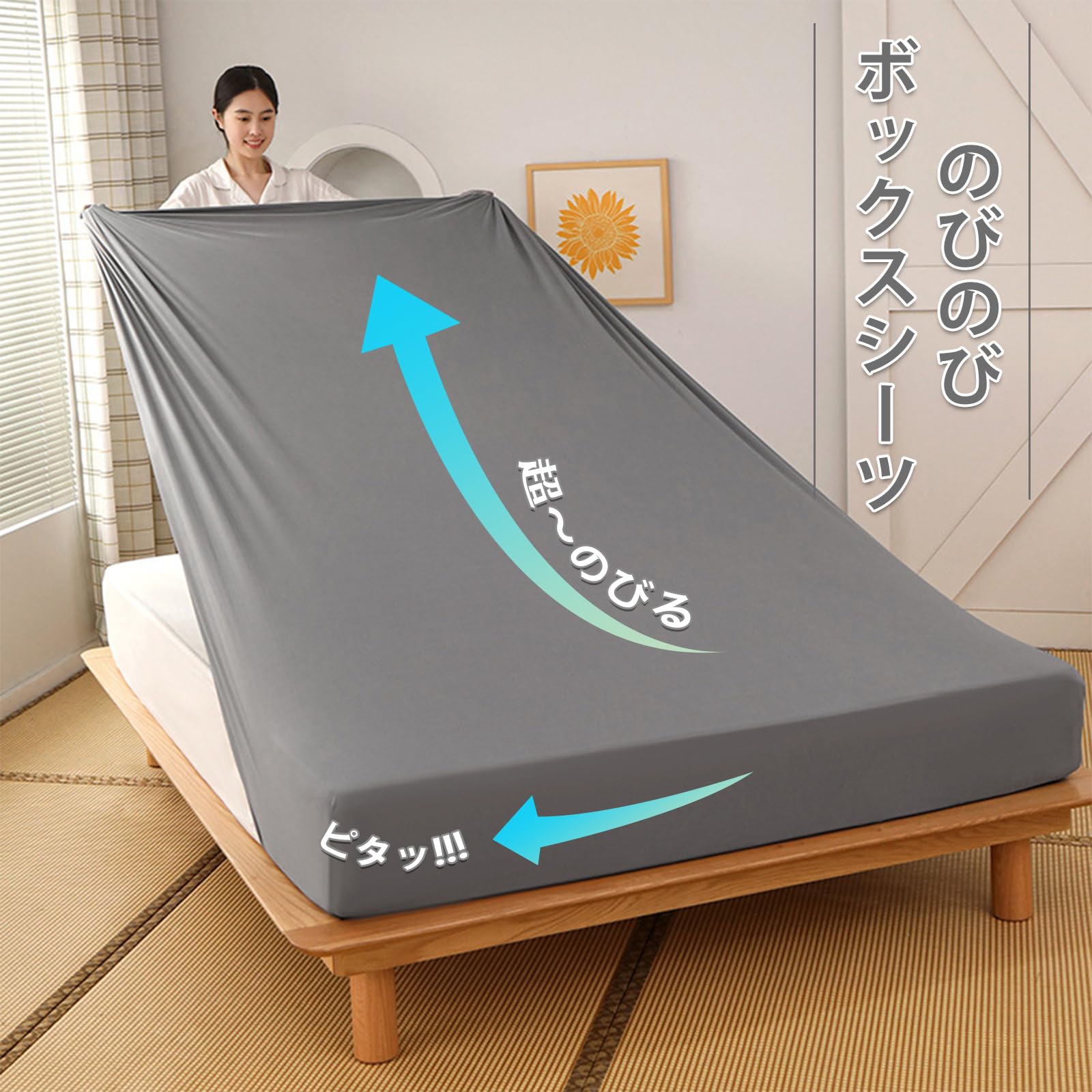 【3Dストレッチ生地&伸びるベッドシーツ&アイロン要らず】お客様のご要望にお応えできるように、仕上がりの美しい、綺麗にフィットするシーツを作りました。ポリウレタン混の生地なので伸縮性に優れタテにもヨコにも自由自在に伸びる素材だから手間をかけず簡単に装着できます。半端なサイズもキレイにフィット。シワになりにくいから気になる取り付け時のシワも アイロンいらずでキレイにフィット。面倒家事も短縮できます。