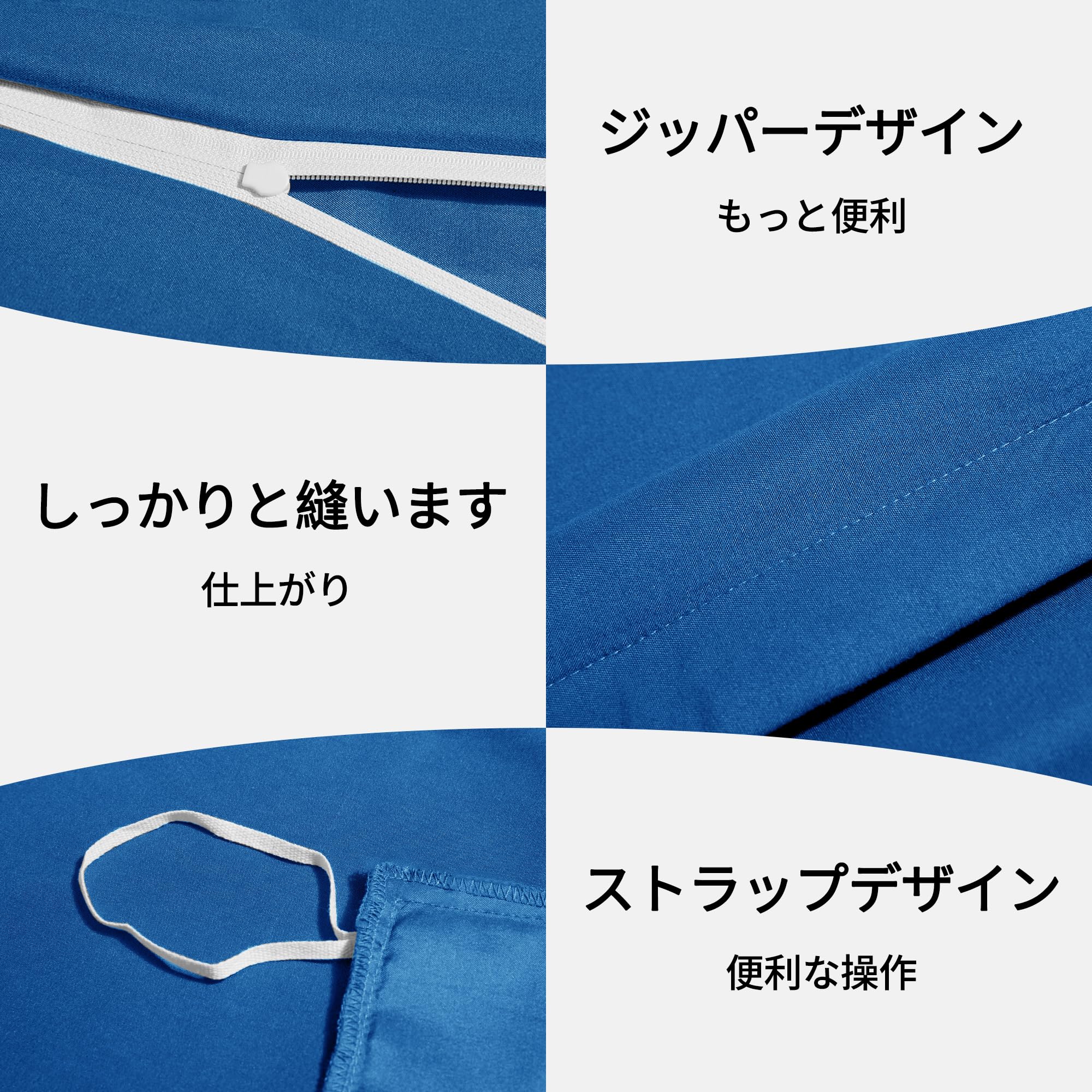 【着脱簡単】掛け布団カバーは全開ファスナー式で、ずれ防止のひも付きます。布団留めひもが4か所付いており、布団のズレを防ぎながら出し入れが簡単です。枕カバーは封筒式です。ファスナーがなく就寝の邪魔になりません。和式用ボックスシーツは全周ゴム仕様です。ボックスシーツには全周ズレ防止ゴムが付いており、マットレスの四隅をぴったり包み込み、フラットでシワになりにくいです。高さ3-28cmのベッド、マットレス、敷き布団に対応できます。
