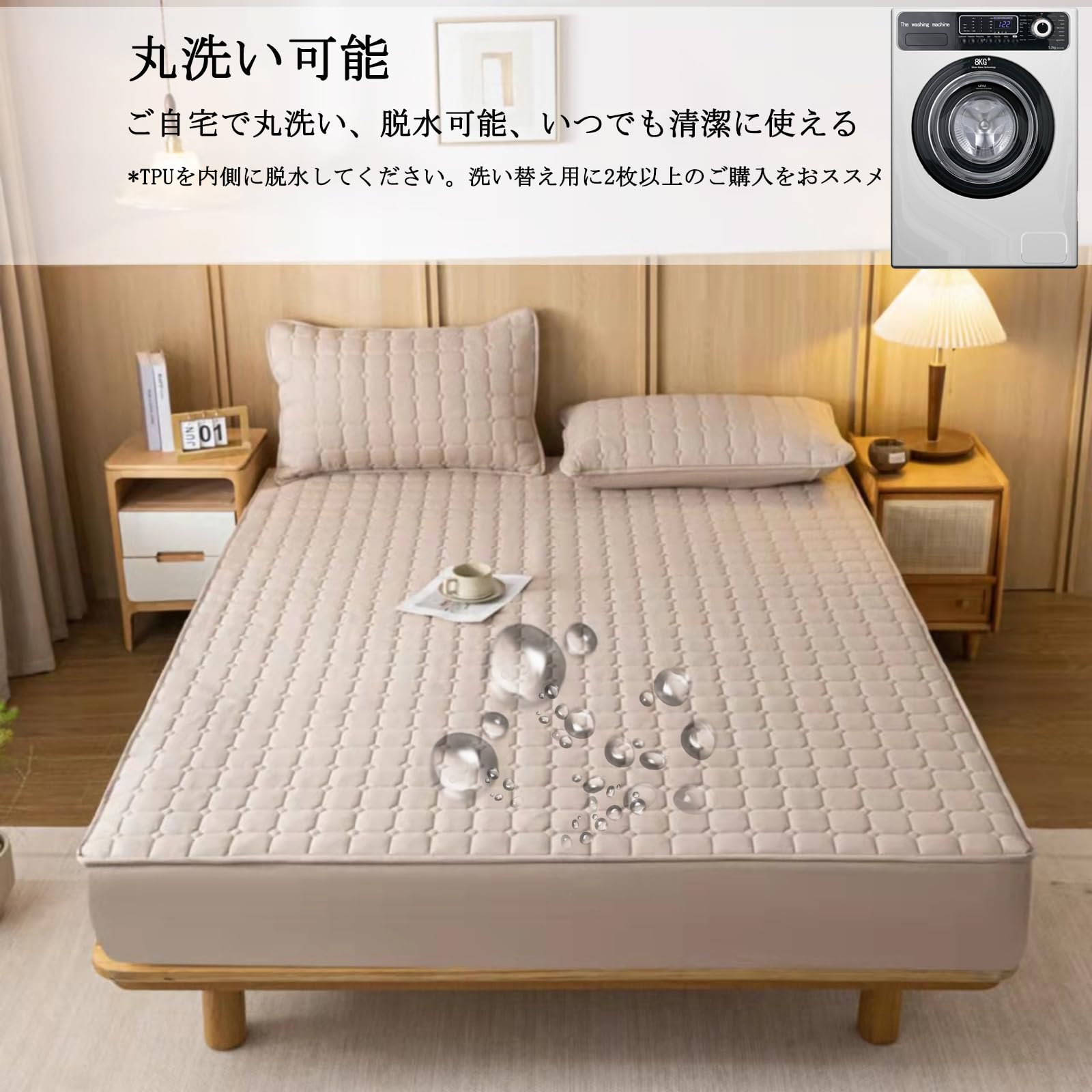 【吸水速乾・防ダニ・防臭】ベッドカバーは水速乾タイプので洗濯機で丸洗い後、比較的短時間で乾きます。ベッドシーツは防ダニ・防臭作用もあるので通気性が良くて柔らかくて快適です。ご自宅の洗濯機で丸洗い可能、いつでも清潔に使えます。洗い替え用2枚以上のご購入をお勧めします。※乾燥機は使用しないでください。 ※電気毛布など熱源のあるものとの併用不可です。