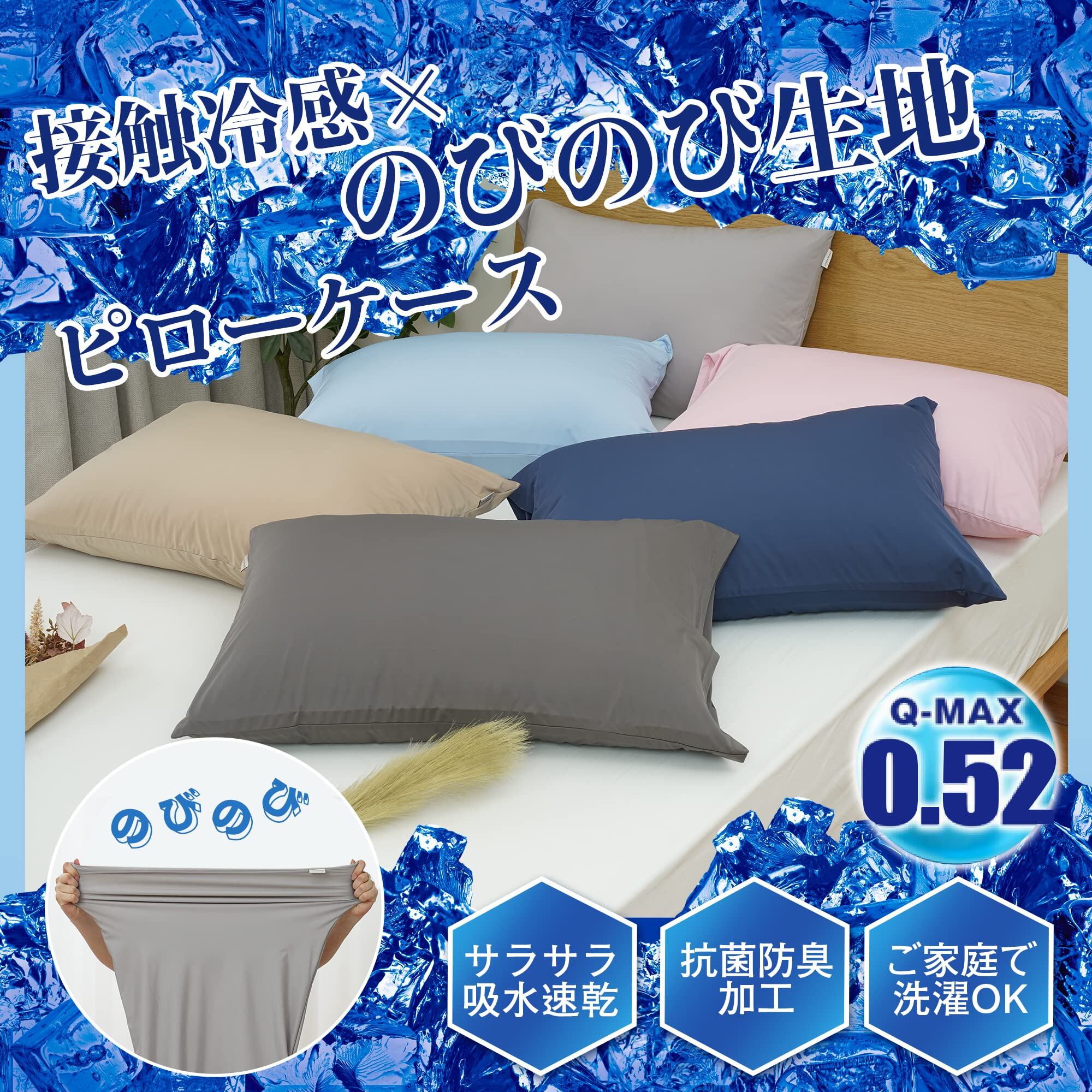 §M∞chouyuuhin 接触冷感 枕カバー のびのびまくらカバー 43 63 50 70 兼用 Q-MAX0.52 ストレッチ Tシャツ素材 ピローケース 封筒式 枕かばー ツルツル 柔らかい さらさら肌触り 抗菌防臭 防ダニ 洗える ピンク