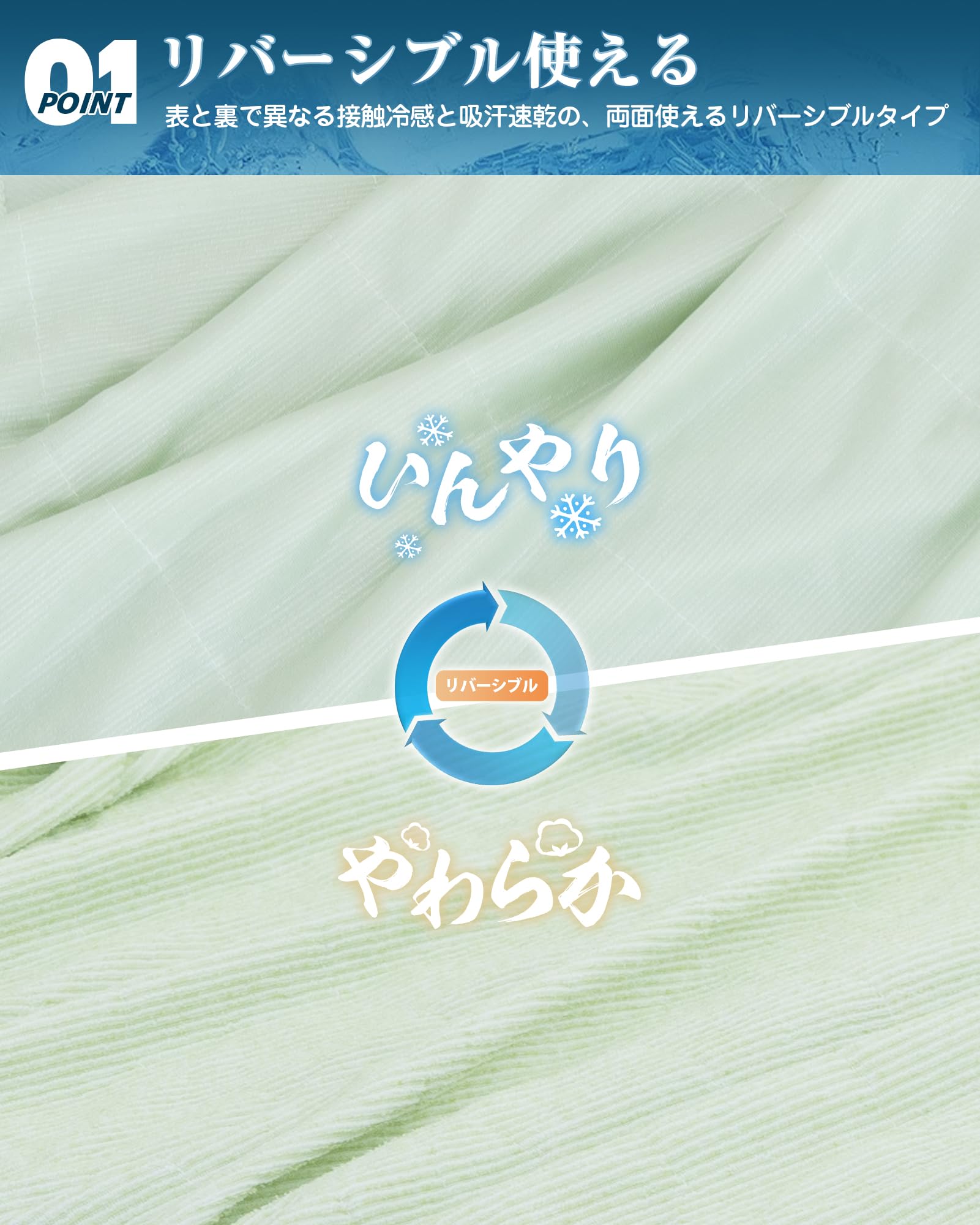 【リバーシブル】冷感&タオル地:寝返りのたびに心地良いひんやり感が伝わり、寝苦しい夜にもひんやりとした感触をお楽しみいただけます。冷房との併用でさらにひんやり!やわらかパイルの素材を使用していますので、吸湿・速乾・通気!汗をかきやすい夏でもさらっとして快適にご使用いただけます。