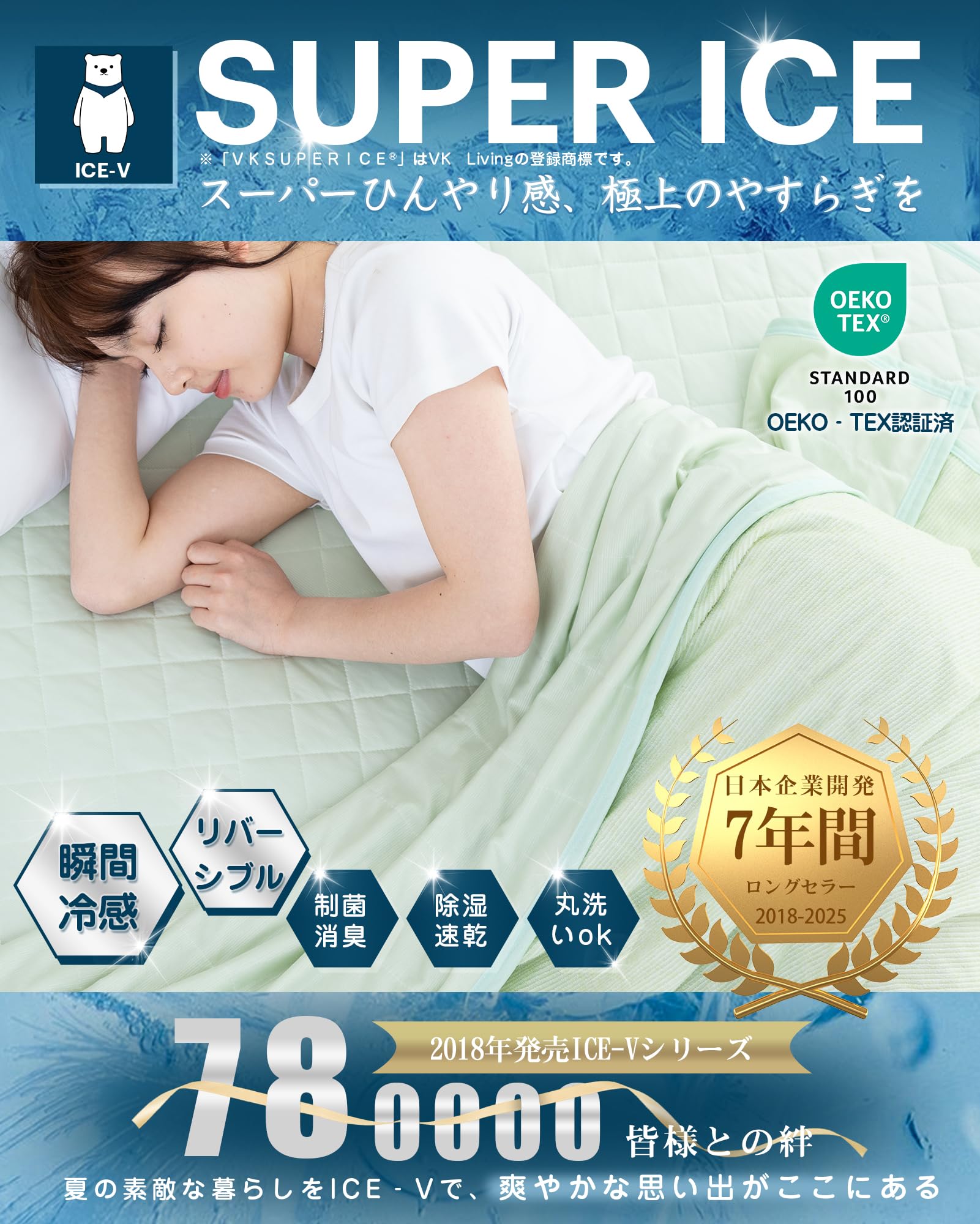 【進化を続ける「ICE-Vシリーズ」7周年記念!】人気のICE-Vシリーズ、今年で7周年!5年連続敷きパッド第1位、掛け布団第1位、タオルケット第1位、3冠達成!合計78萬枚突破!大変多くのご注文をいただき、本当にありがとうございます。OEKOTEX認証済、ISO9001認定工場、Transparencyによる確認済、最高の眠りを提供します!「ICE-Vシリーズ」は、これからも進化し続けます。