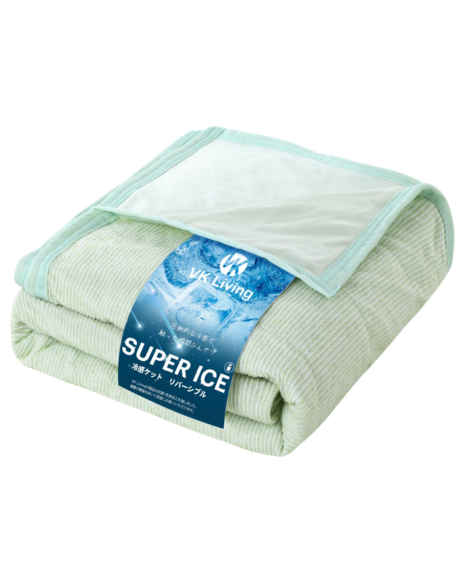 VK Living タオルケット 接触冷感 夏用 シングル リバーシブル 【SUPER ICE】 冷感&タオル地 140×190cm ひんやり 24時間持続制菌消臭 除湿速乾 軽量 丸洗いOK たおるけっと 冷感ケット クールケット グリーン