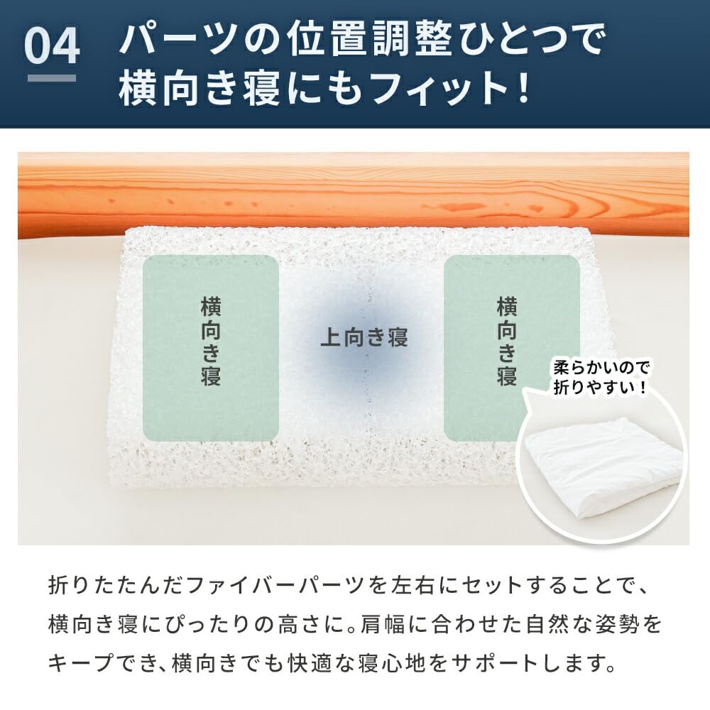 【首から頭部へやさしく沿うドーナツ型リング】中が空洞になったファイバーリング。頭部をしっかり支え、バランス良く体圧を分散し、自然な寝姿勢と寝返りをサポートします。高い反発力で寝返りがしやすく、中途覚醒を防ぎ、熟睡が続く。お好みの高さ&固さに調整可能!2枚のファイバーパーツ入り。厚さ2cm、2枚の高反発ファイバーパーツの抜き差しで3段階の高さを選べます!ファイバーパーツは布袋に入った状態でお届けするのでリングの出し入れもしやすい設計になっています。使い方いろいろ!3パターンの高さ調節。パーツの位置調整ひとつで、横向き寝にもフィット!頭が蒸れにくい通気設計で抜群の通気性。カバーも本体も!ぜ~んぶ洗える清潔設計。通気性と清潔にこだわったメッシュ素材のカバー。
