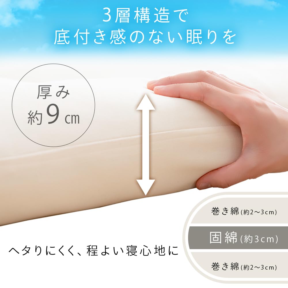 床付き軽減のため、敷布団の中心に厚さ3cmの固綿を使用し、横になったときの心地よい沈み感を実現。