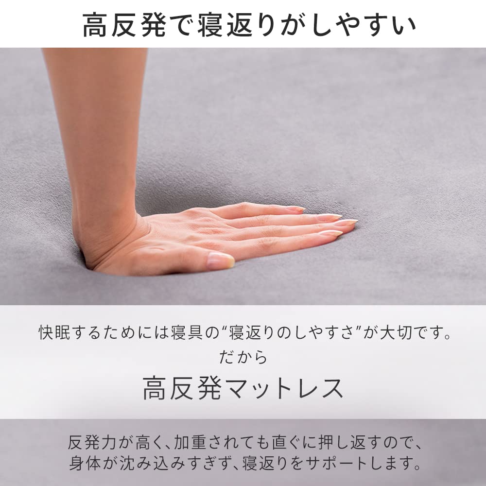 反発力が高く、加重されても直ぐに押し返すので、身体が沈み込みすぎず、寝返りをサポートします。