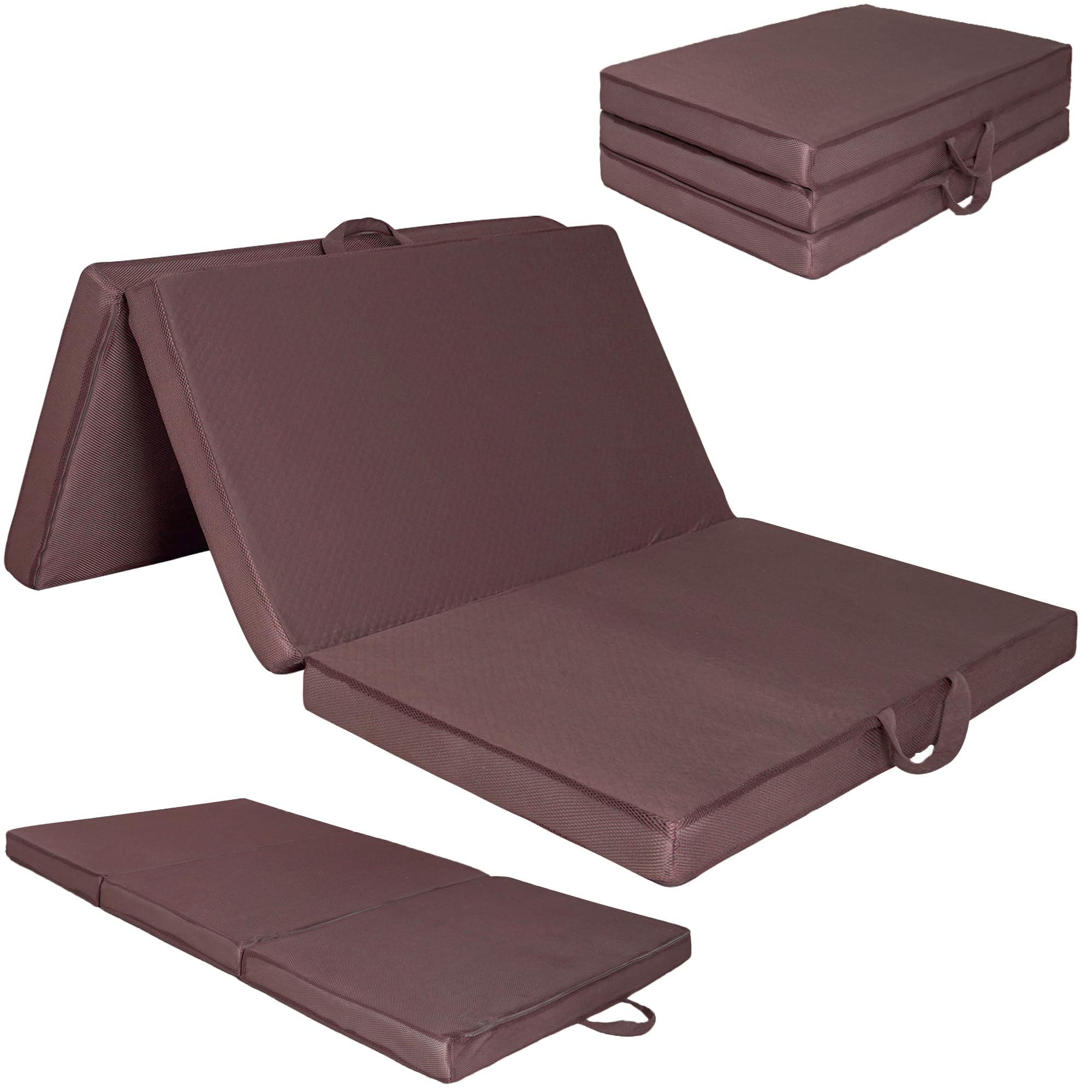 【人気商品】マットレス セミダブル 三つ折り 折り畳み 極厚10cm 高反発 210N 25D リバーシブル ニット&メッシュ 取っ手付き 洗えるカバー 抗菌防臭 体圧分散 程良い硬め 通気 オールシーズン 195×120×10cm ブラウン
