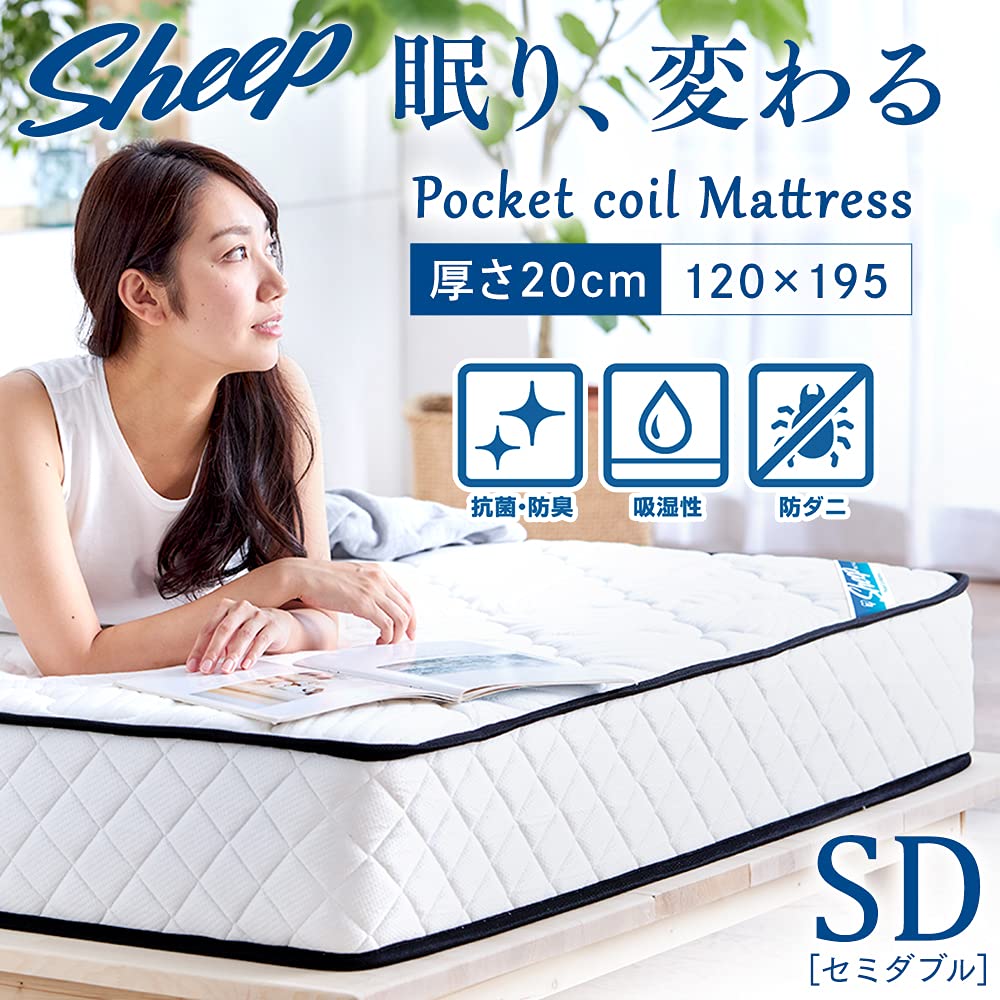 アイリスオーヤマ Sheep 眠りを変えるポケットコイルマットレス 極厚20mmウレタン入り 高密度コイル627個 ホテルライクな寝心地 抗菌防臭 防ダニ らくらく設置 圧縮梱包でお届け セミダブル 厚さ20cm より快適な睡眠をサポート ホワイト PMTS20N-SD