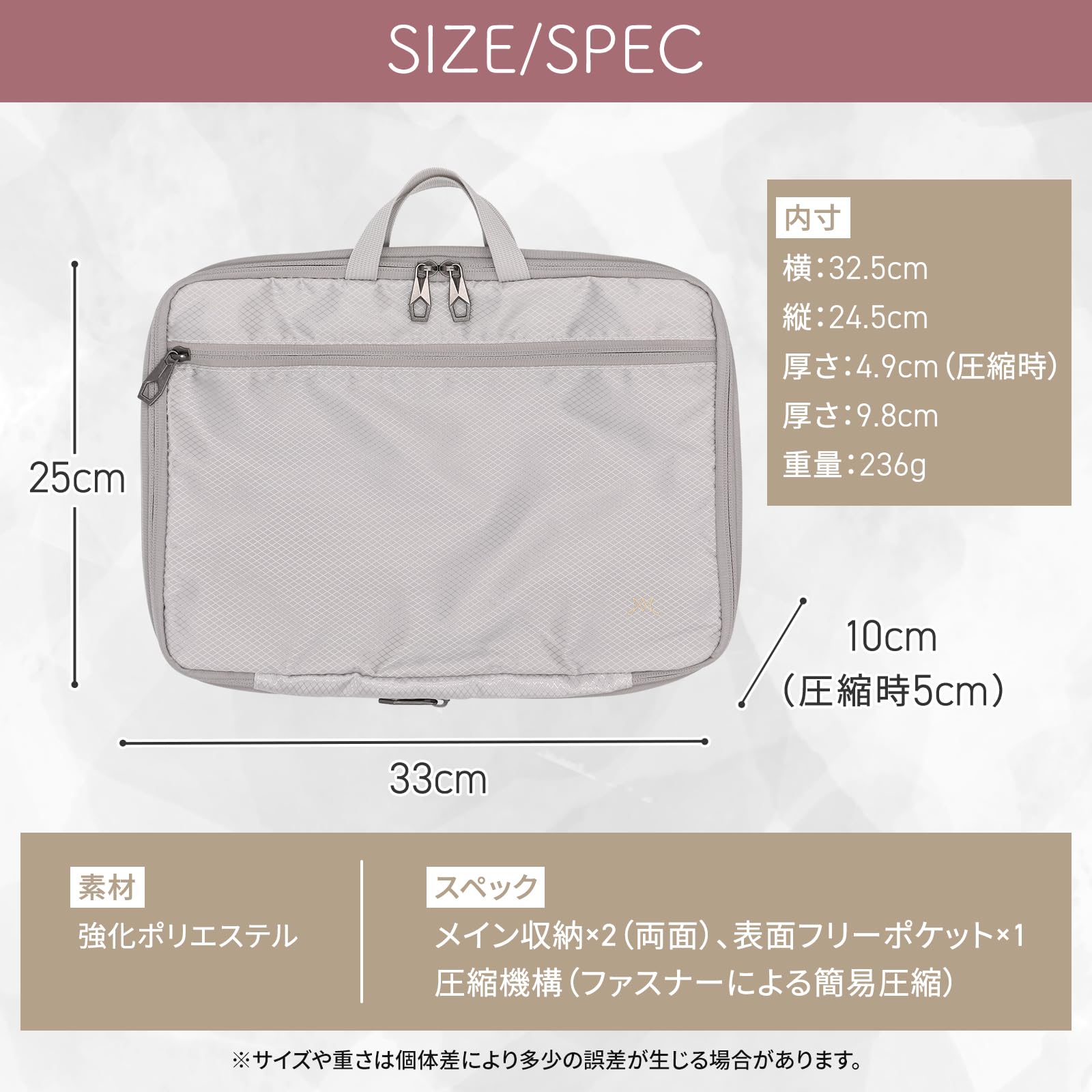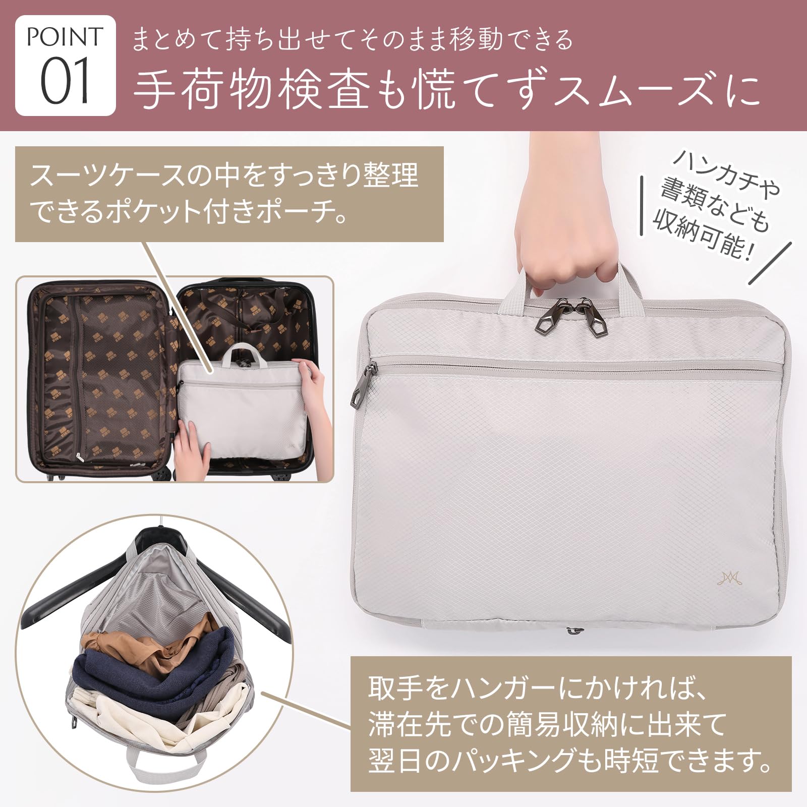 【旅をスマートに。】 Mont Solaire トラベル圧縮ポーチ 撥水 圧縮バッグ 仕分け 収納 ファスナー 旅行バッグ 衣類 出張 海外旅行 コンパクト 容量 トラベルポーチ 圧縮 袋 収納ポーチ 旅行用圧縮袋 圧縮ポーチ 【シルキーホワイト】