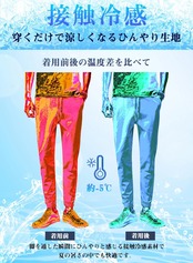 夏に大人気の『接触冷感』素材を使用しました。汗を吸っても素早く乾く、通気性に優れてムレ感を軽減、蒸し暑い季節も涼しく過ごせます。肌を5度くらい冷やしているような感覚となめらかな肌触りで暑い日でも快適な着心地をキープするイージーパンツです。