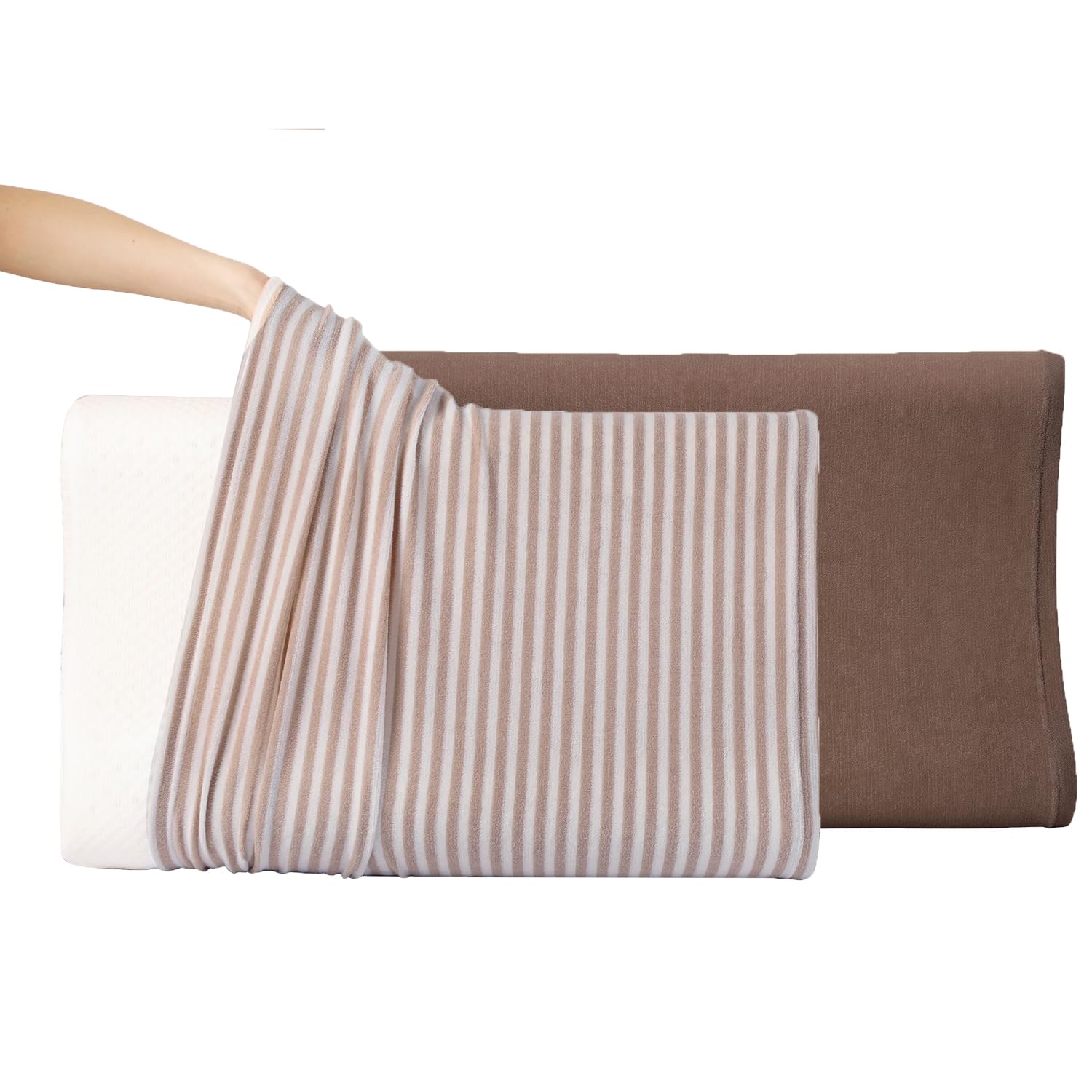 【数量限定】MISOLER 枕カバー のびのび枕カバー 伸縮タイプ 着脱簡単 抗菌防臭 柔らかい まくらカバー タオル地 パイル 洗える 筒型 2枚セット ストライプ·濃い·ブラウン + 無地·濃い·ブラウン 約36X57cm(適応まくらサイズ 約 35x55~50x70cm)