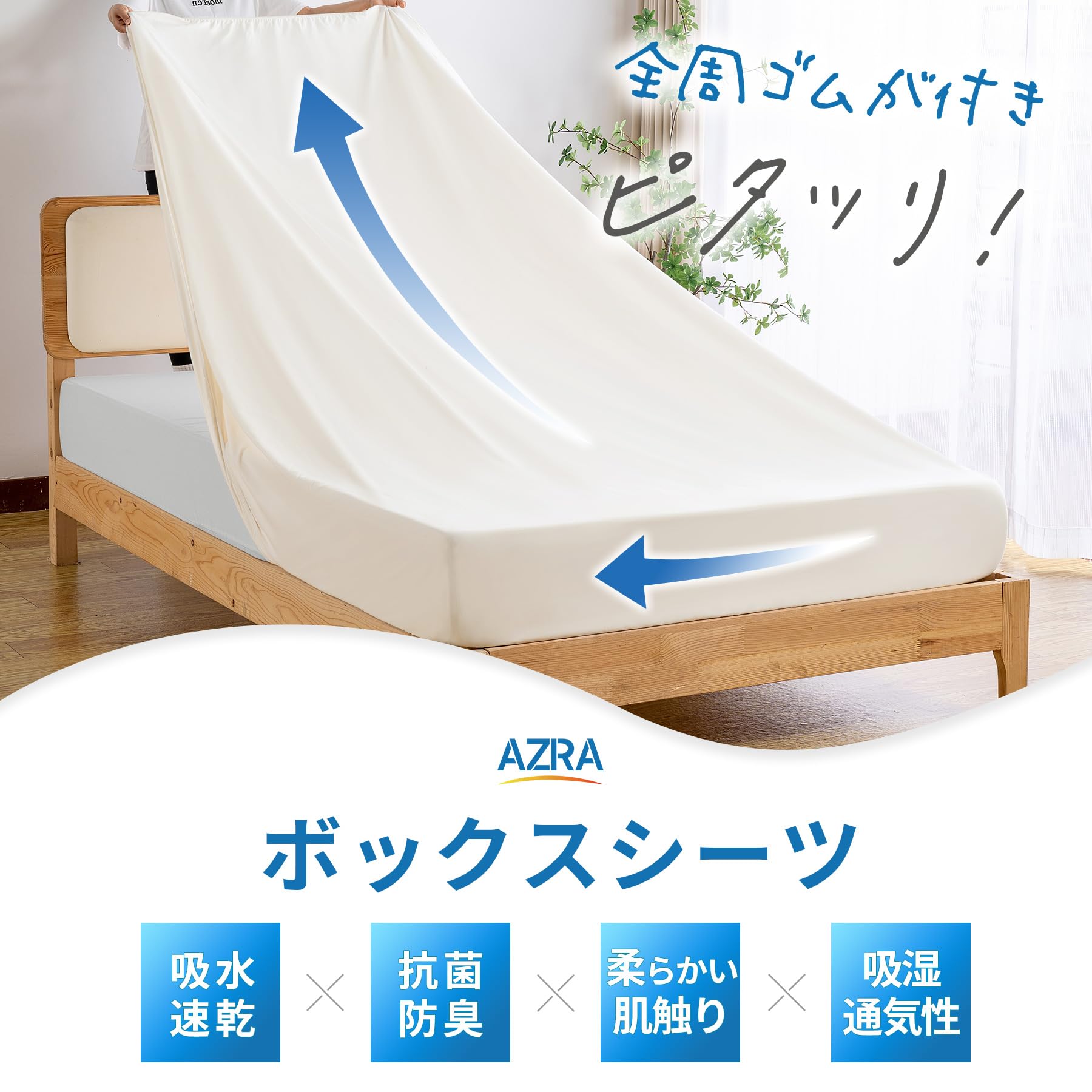AZRA ボックスシーツ シングル 吸水速乾 ピーチスキン加工 素肌にやさしい ベッド/マットレス/敷き布団対応 ベッドシーツ マットレスカバー ベッドカバー オールシーズン 抗菌防臭 100X200cm アイボリー