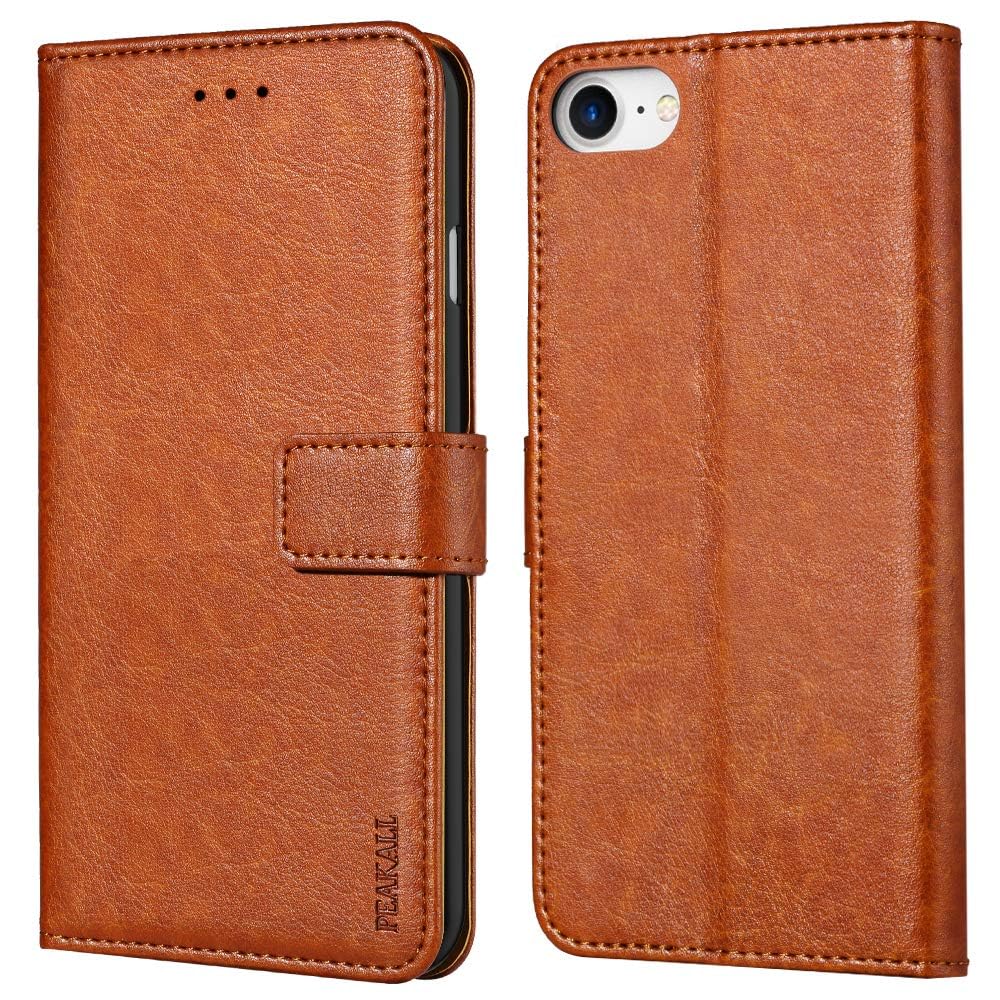 Peakally iPhone SE ケース 手帳型 iPhone se3/ iPhone se2/iPhone8/iPhone7/iPhone6s/6 手帳型スマホケース カード収納 財布型ケース 高級PUレザー マグネット式 スタンド機能 360度保護 耐衝撃 ( ブラウン)