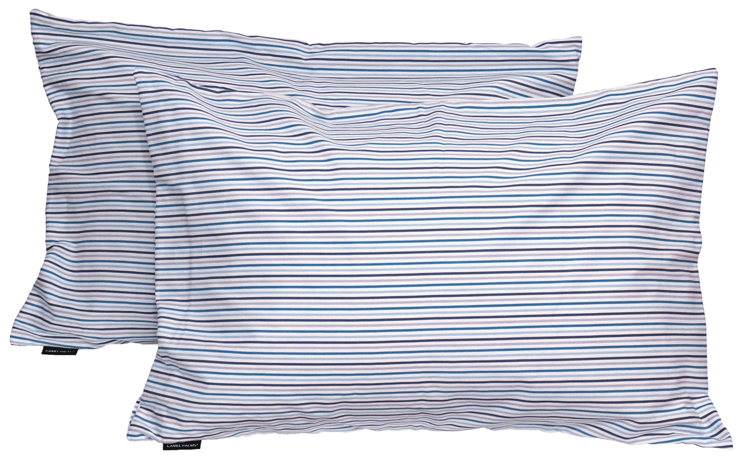 【2022最新】CAMEL PALMS 日本製 綿100% まくらカバー ピローケース ファスナー式 43×63cm ボーダー柄 ブルー 【同色2枚組】