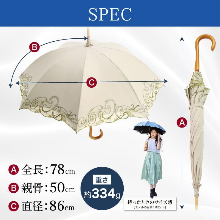 【在庫処分】[シノワズリーモダン] 日傘 晴雨兼用 長傘 レディース かわず張り 完全遮光 UPF50+ 遮熱 逃熱 UVカット100% 全面刺繍 ペイズリー クリスタル プレシオサ ギフト 母の日